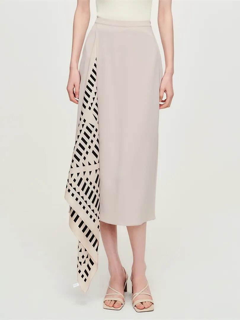 ▲醋酸前片拼接可卸丝巾半裙¥1698,折后价¥1528