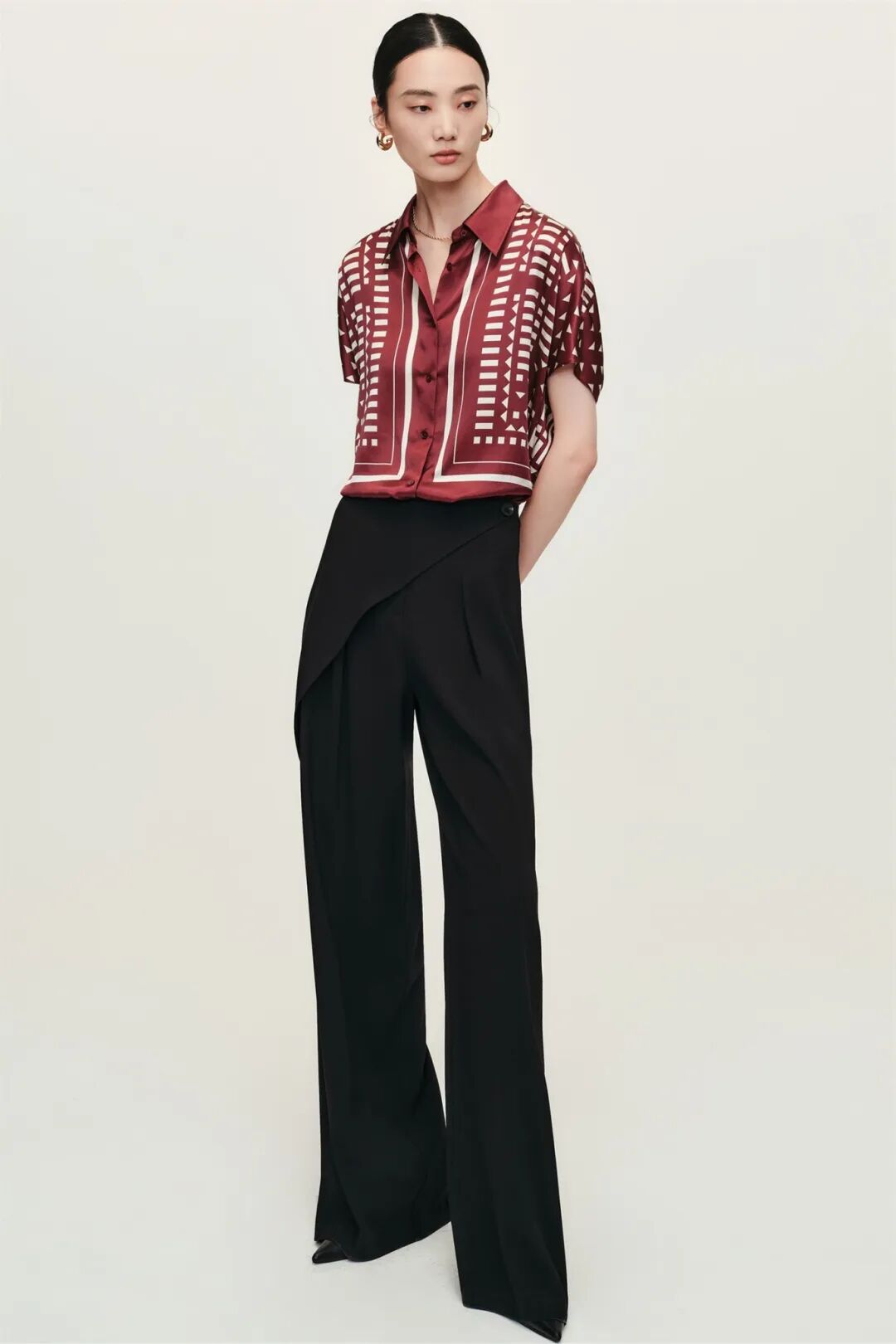 ▲香云纱腰部抽碎褶阔腿裤¥1998,折后价¥1798