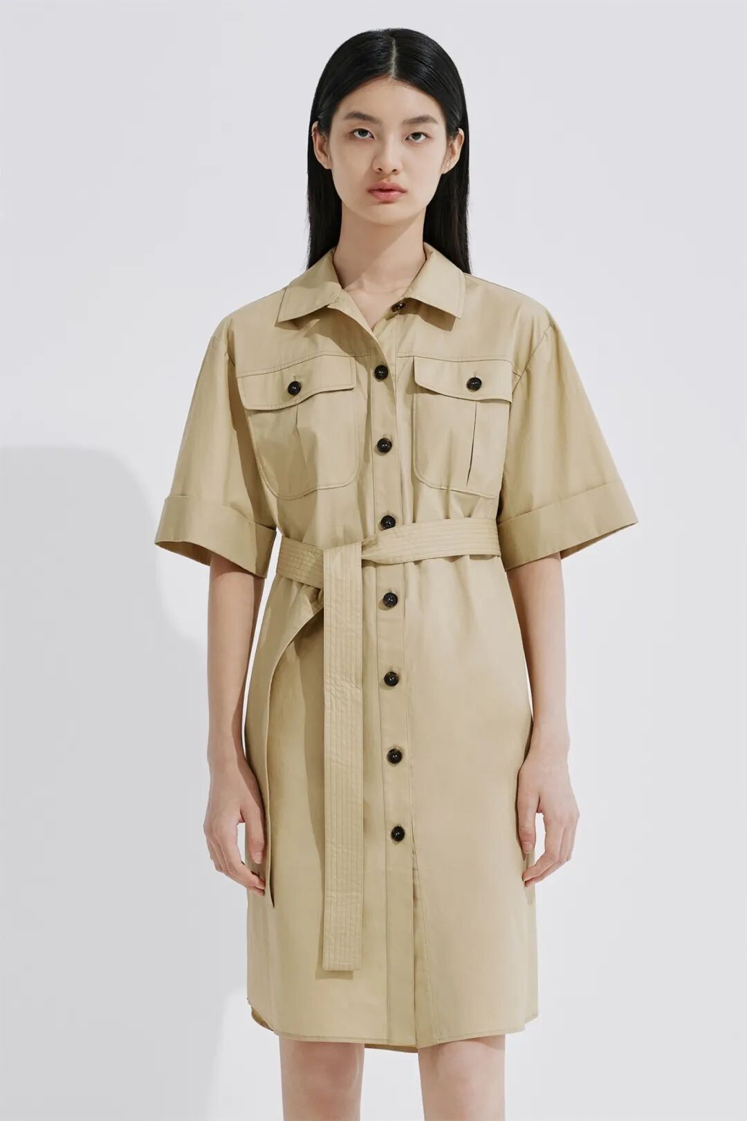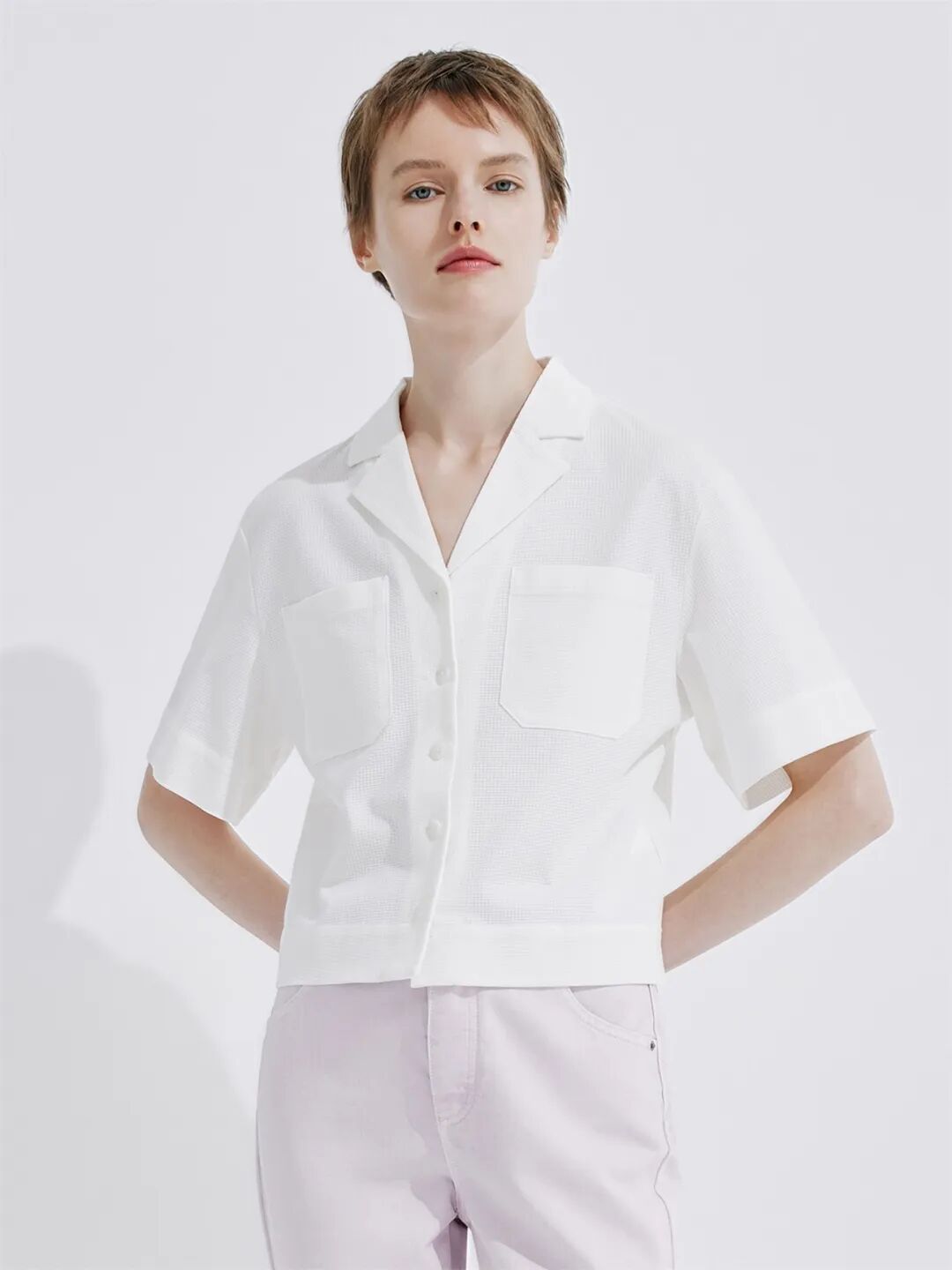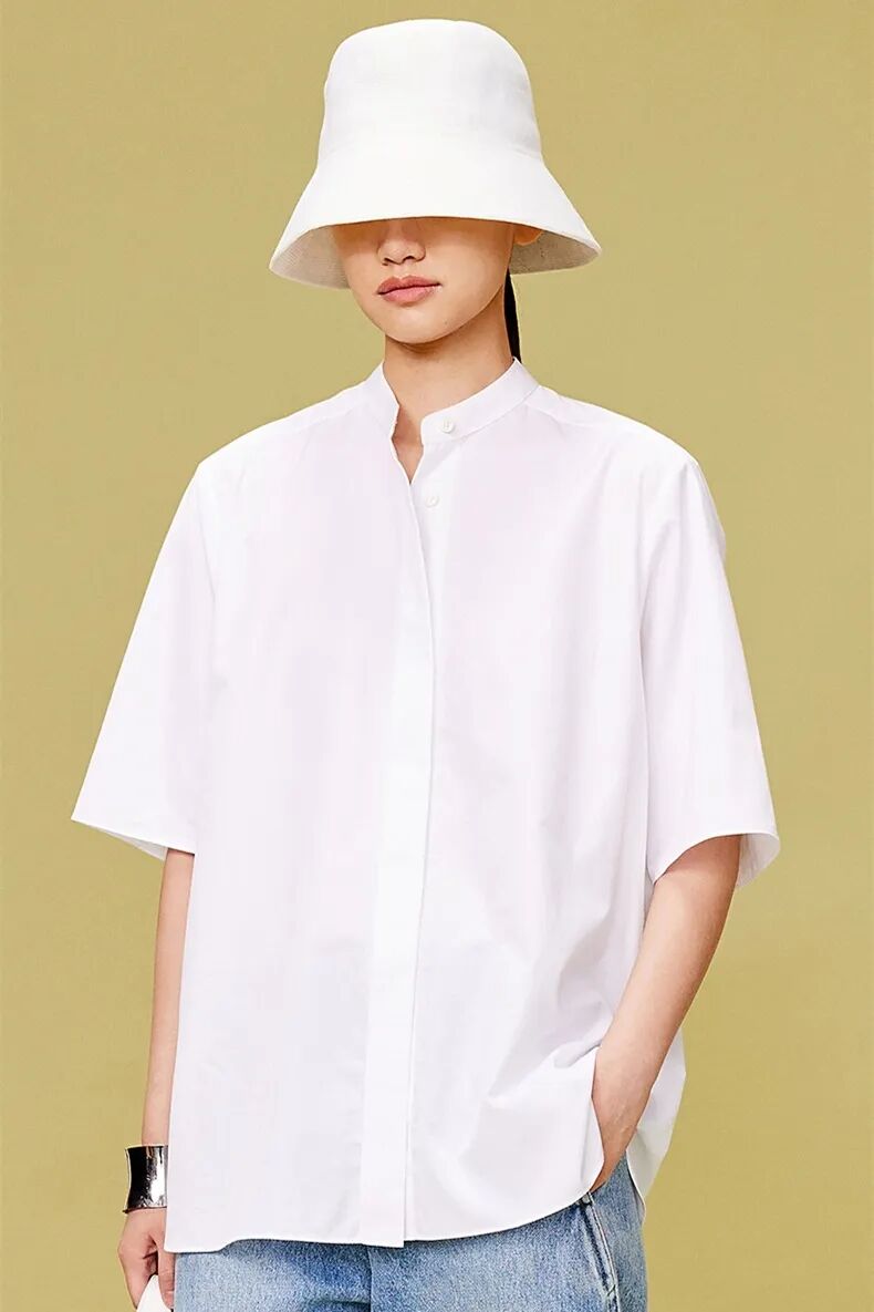 ▲纯棉翻领短袖宽松衬衫¥1190,折后价¥1130