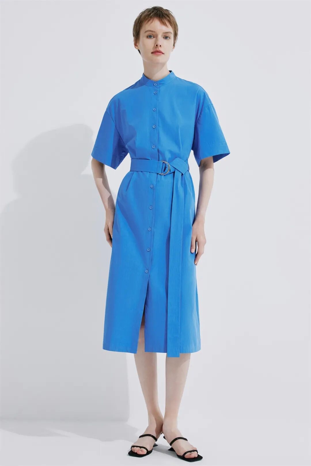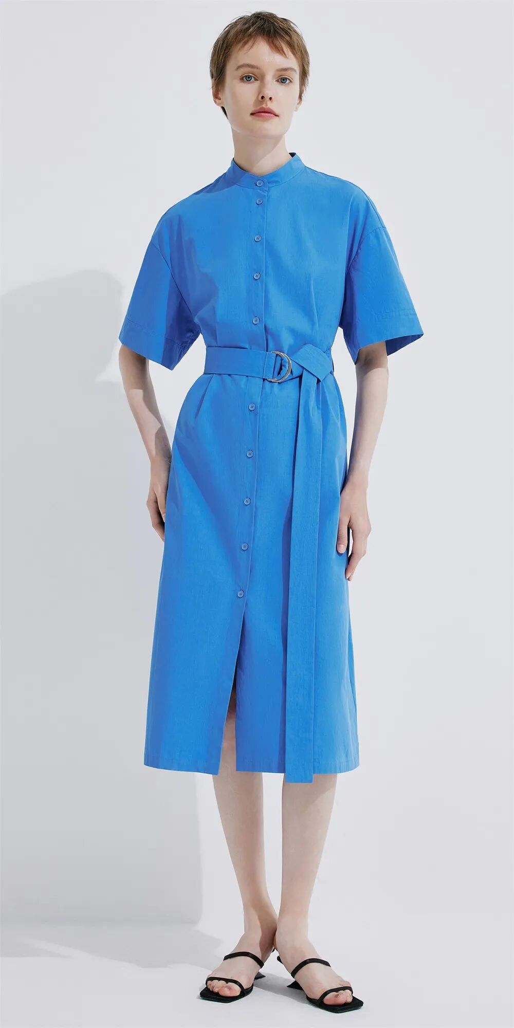 缤纷色彩绘制春夏绚烂遐想,纯棉质地吸湿透气,艳蓝色带来吸睛效果,宽腰带可随时调整穿着效果,适合多种身材。