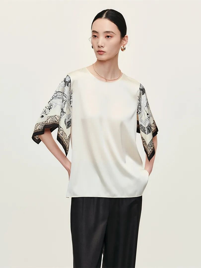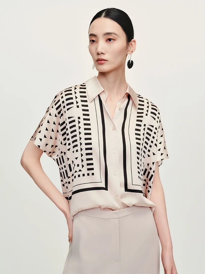 ▲丝粘弹力缎印花衬衣¥1698,折后价¥1528