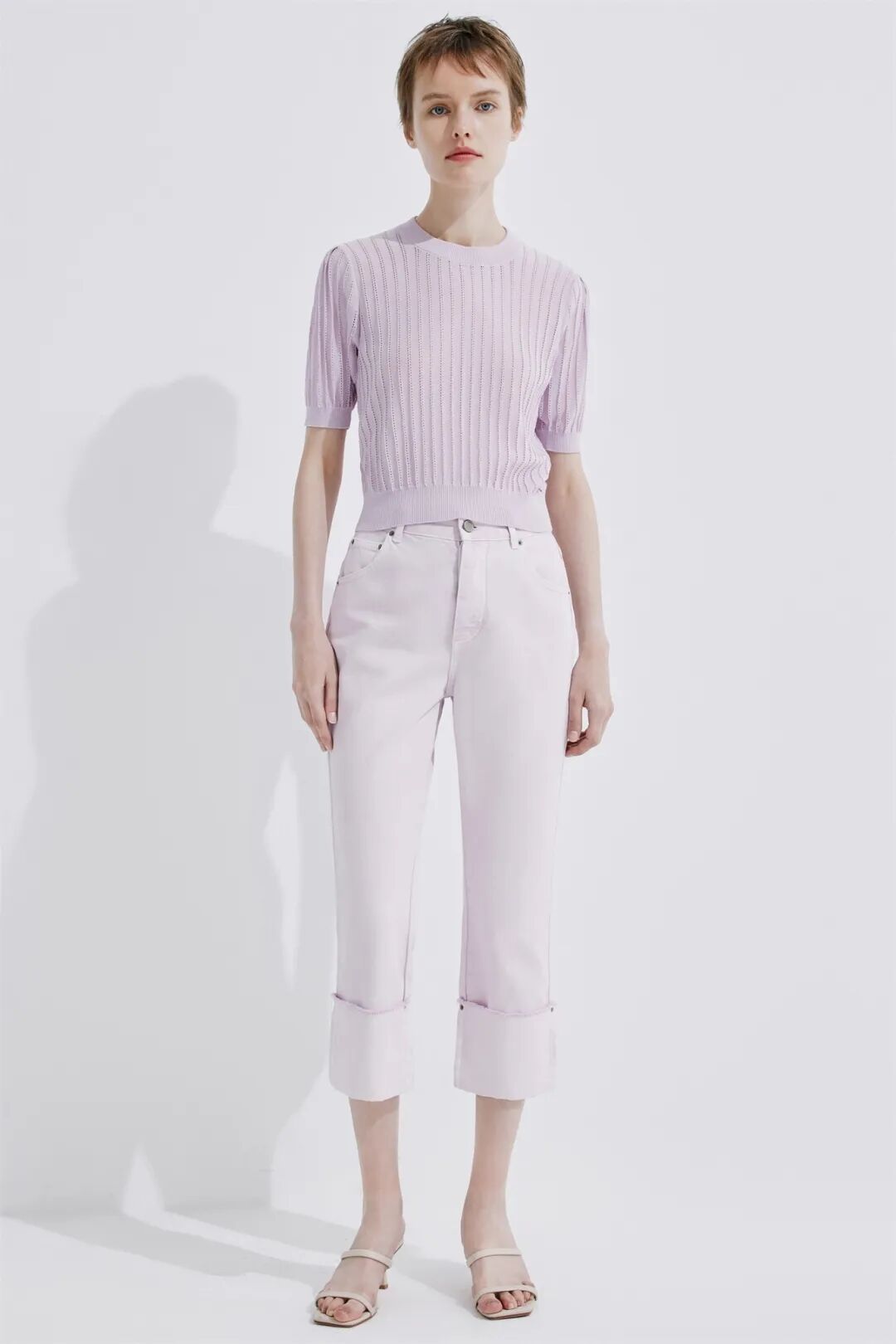 ▲棉混纺短款短袖针织衫¥1190,折后价¥1130【点击购买】
