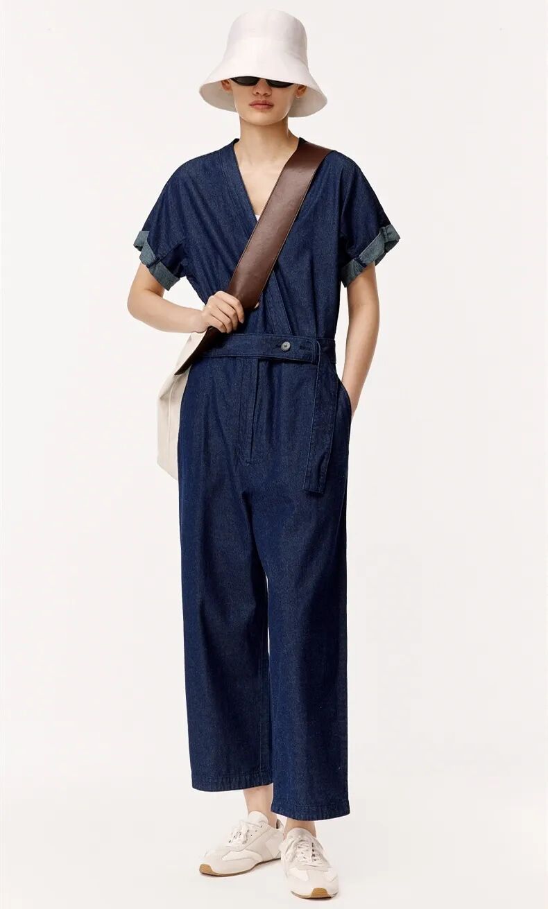 ▲V领短袖牛仔连体裤¥1995,折后价¥1795