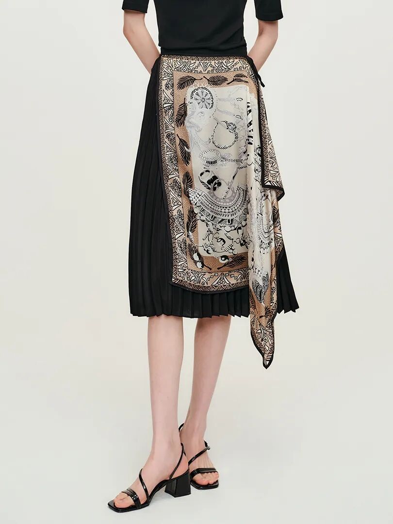 ▲拼接印花丝巾百褶半裙¥1698,折后价¥1528