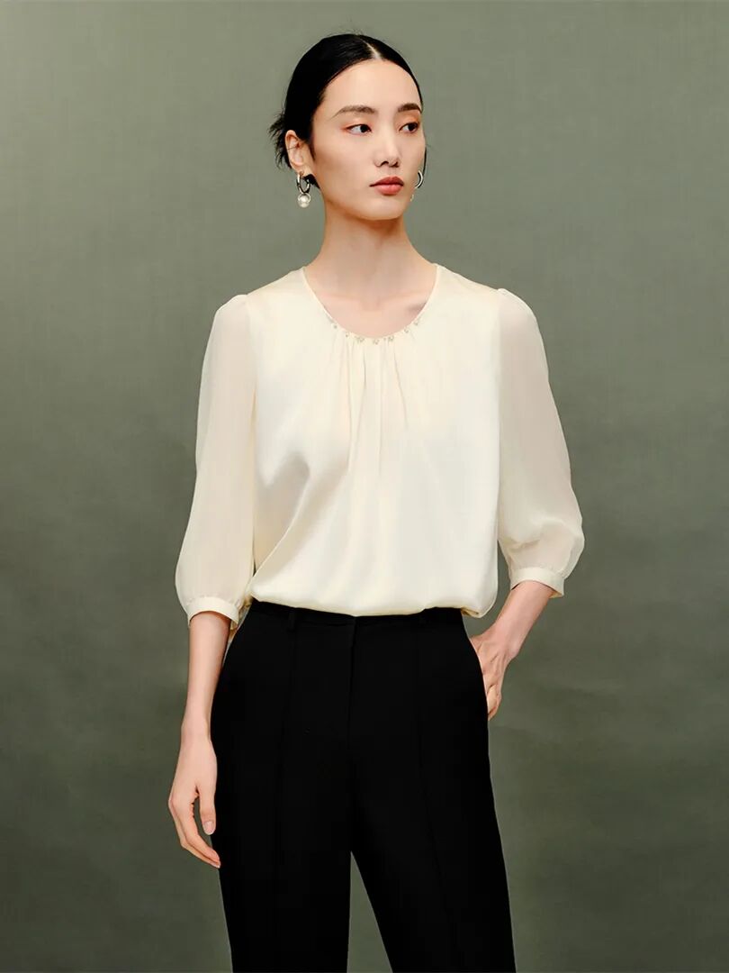 ▲桑蚕丝系带收腰衬衫¥2995,折后价¥2695