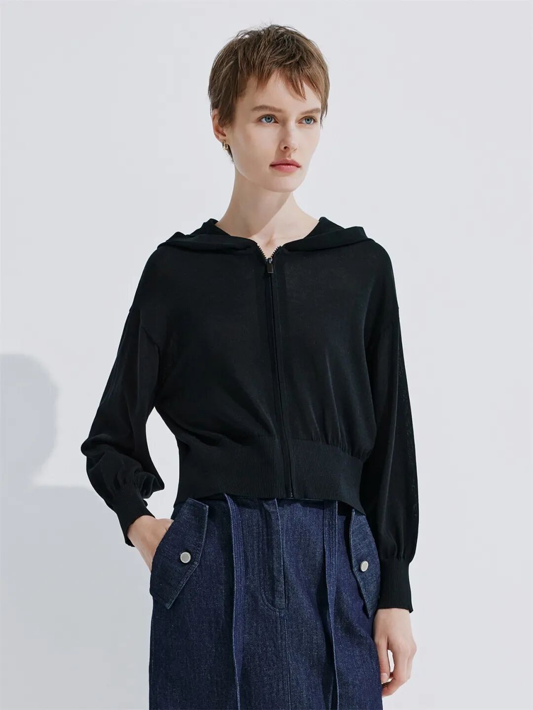 ▲棉混纺连帽针织开衫¥1990,折后价¥1890