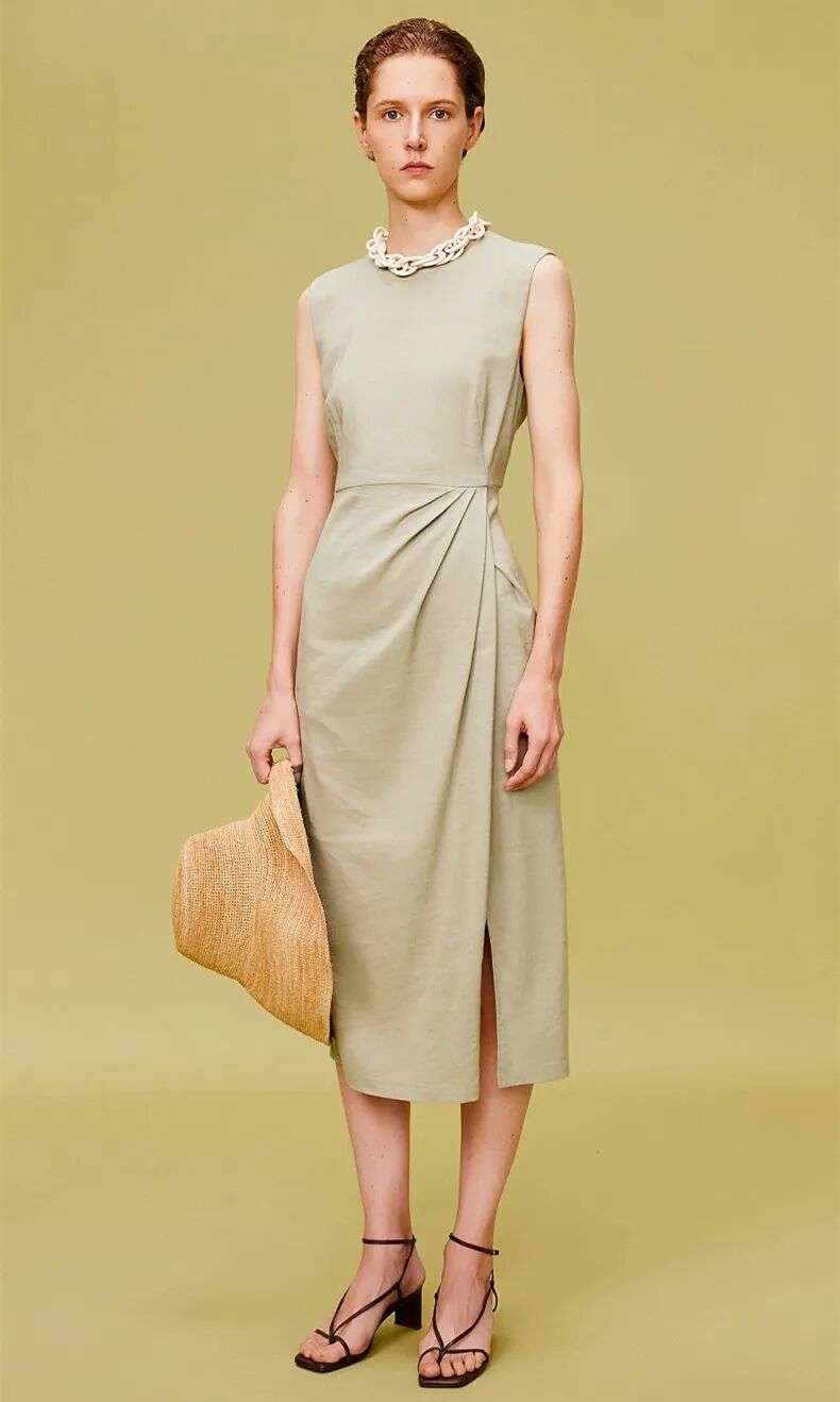 ▲纯棉收腰侧开衩连衣裙¥1390,折后价¥1320【点击购买】
