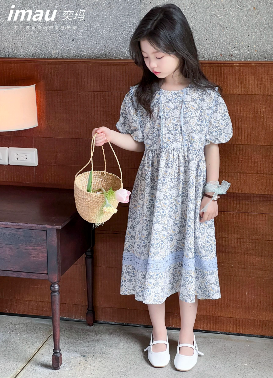 女童碎花有袖连衣裙
