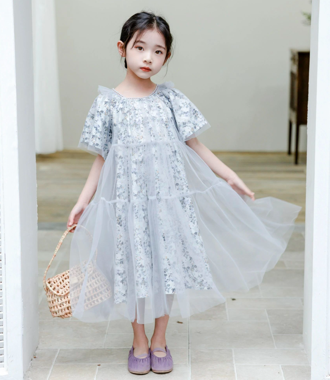 女童碎花网纱纱裙