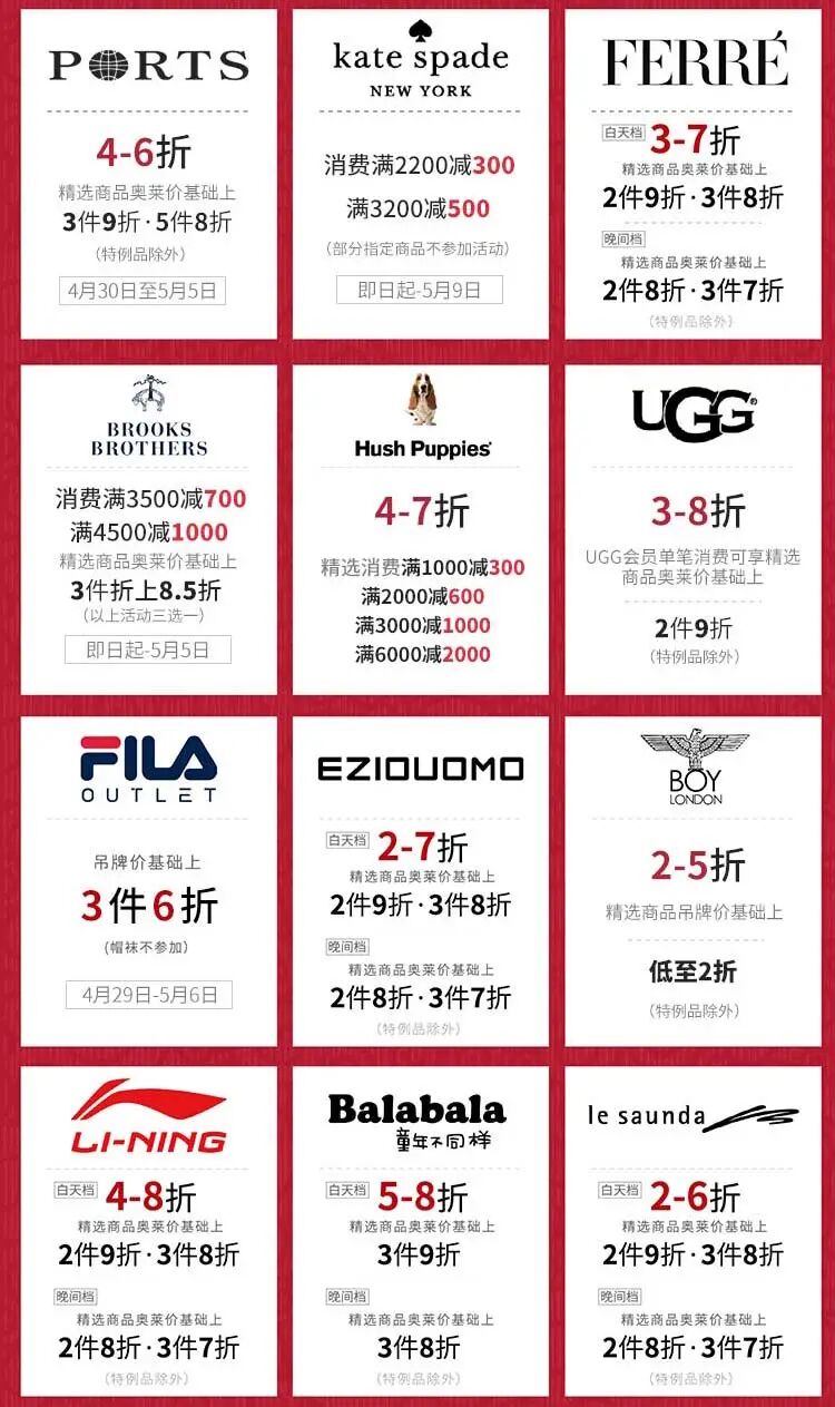 注:所有赠品数量有限,先到先得,赠完即止;赠券使用规则请以券面明示为准;上述各品牌促销以店内公示为准;北京首创奥莱有权在法律允许的范围内对活动进行微调