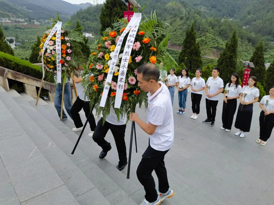 在青杠坡战斗遗址,集团党支部成员向革命烈士敬献花篮,集体脱帽向革命先烈默哀,并在解说员的带领下重温了入党誓词,向革命烈士致以深切悼念和崇高的敬意!