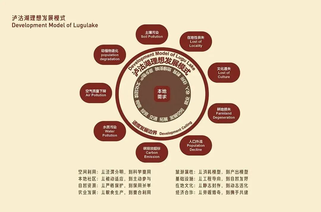 We propose the core planning concept of "Sphere," aiming to establish a self-iterative development path for rural tourism. This journey begins with meticulous planning around the natural landscape of mountains and lakes and the exploration and translation of local culture. By leveraging tourism investment, we seek to drive prosperity in the indigenous communities around Lugu Lake and promote the sustainable development of tourism. Ultimately, our goal is to achieve mutual development and prosperity both within and beyond the lake area, fostering support and synergies between the local economy and cultural tourism industry. This approach ensures that future generations of indigenous descendants will benefit from the planning efforts of today in the long term.