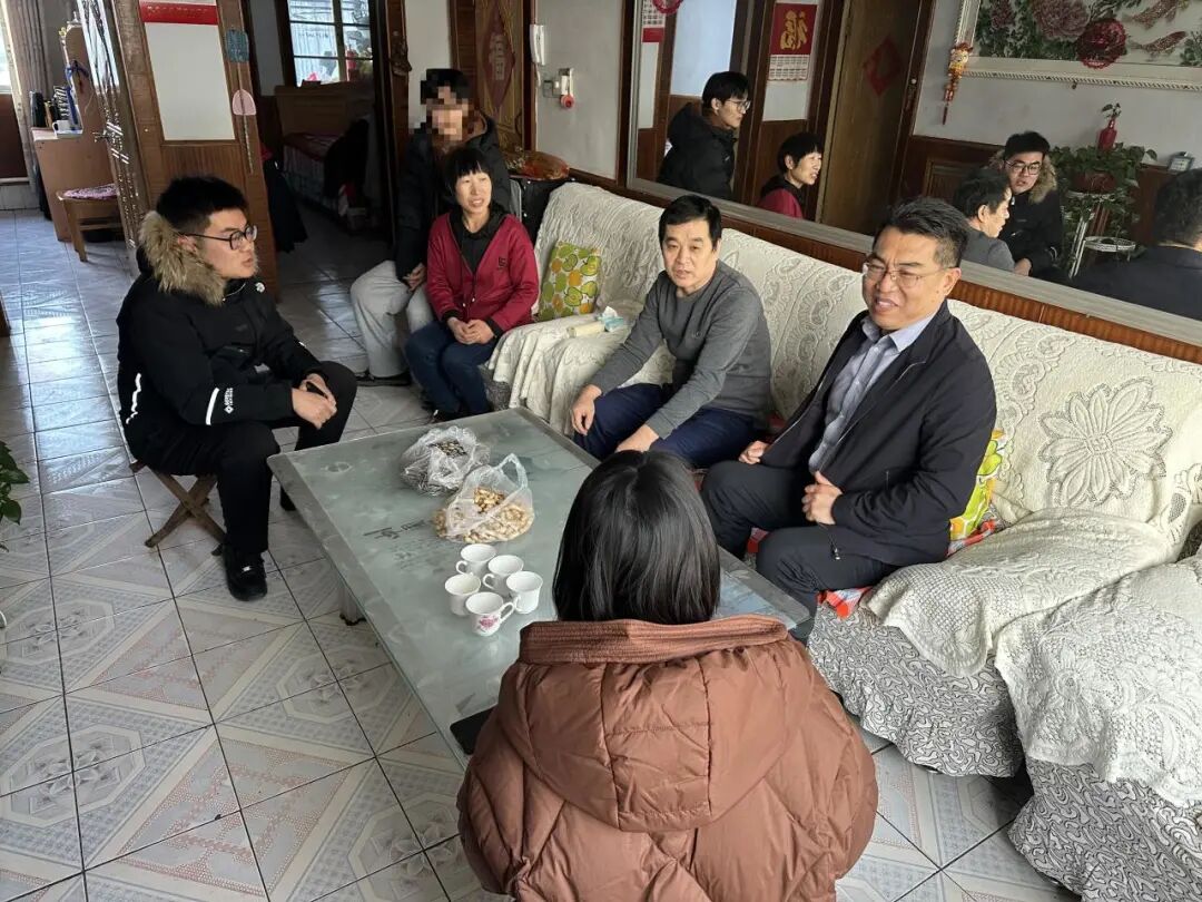 2024年寒假,该校党委副书记张然和辅导员一同赶到杨宇轩的老家——山东省泰安市东平县彭集街道西郭庄村,和他的父母面对面交流他在学校期间的表现,深入了解他的生活和家庭情况。