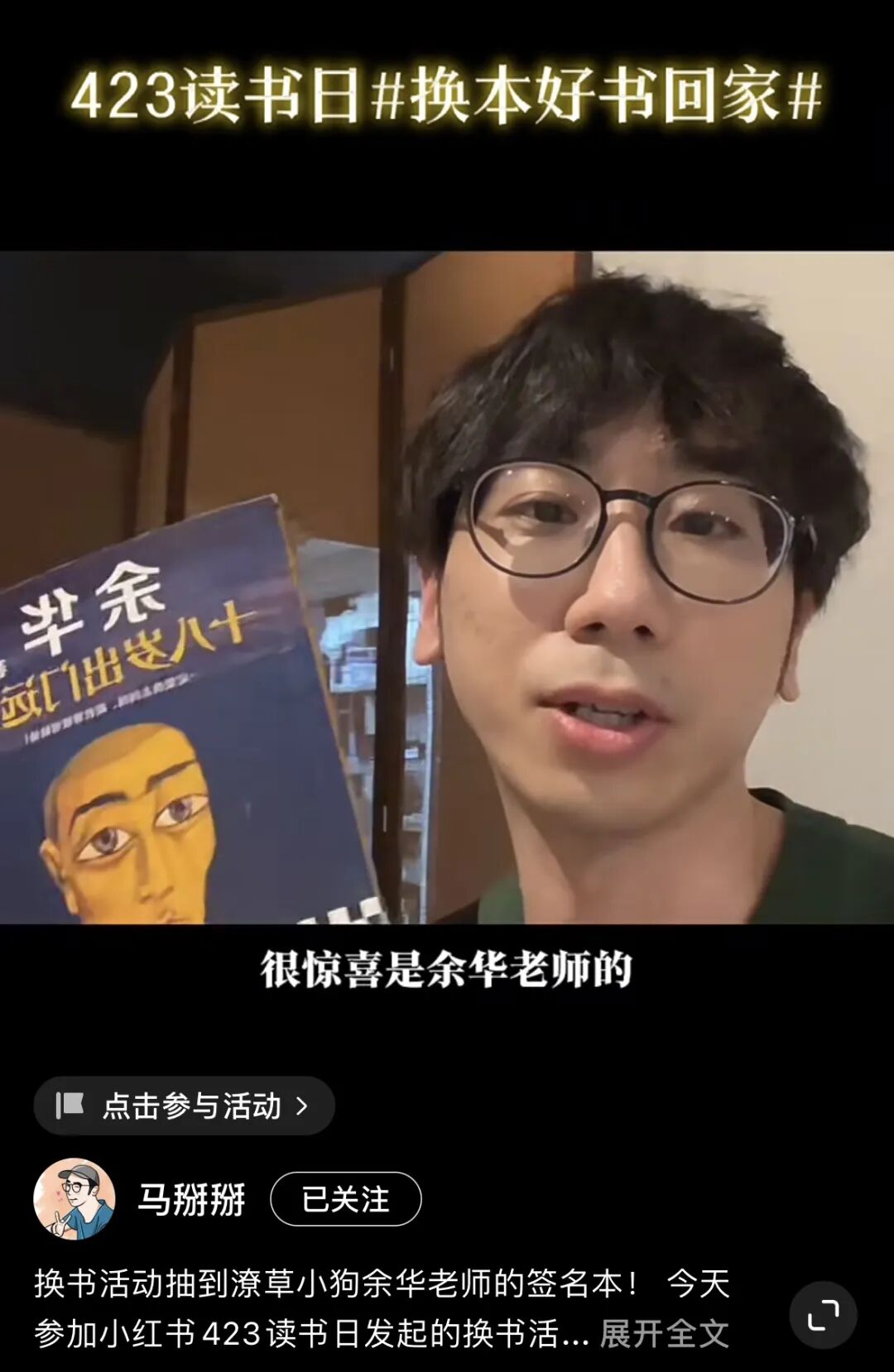 小红书博主@马掰掰 抽到余华老师送出的《十八岁出门远行》,惊呼:“余华老师!很高兴和您共度一本书!”