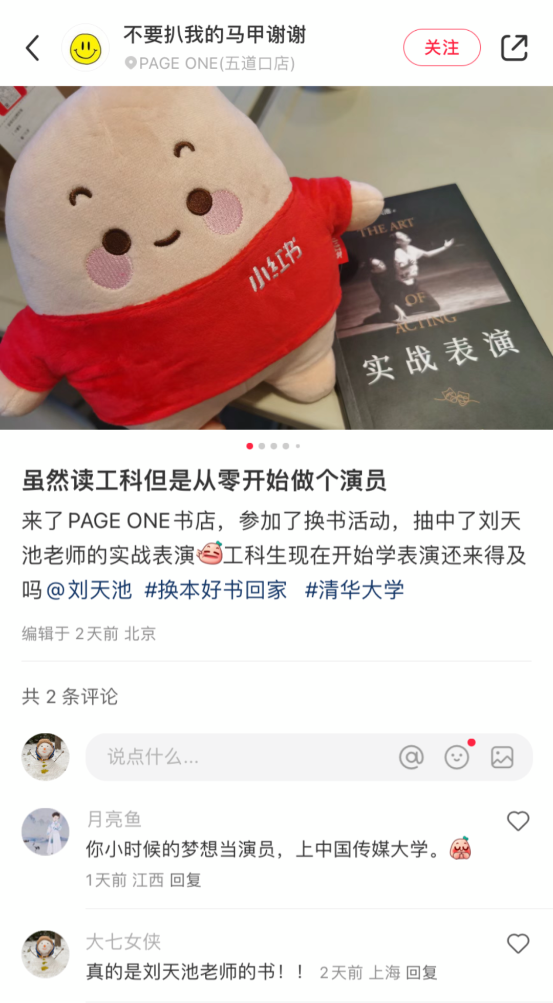 读工科的@不要扒我的马甲 万万没想到,自己能抽到刘天池老师送的《实战表演》:“现在开始学表演还来得及吗?”