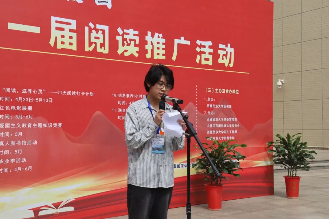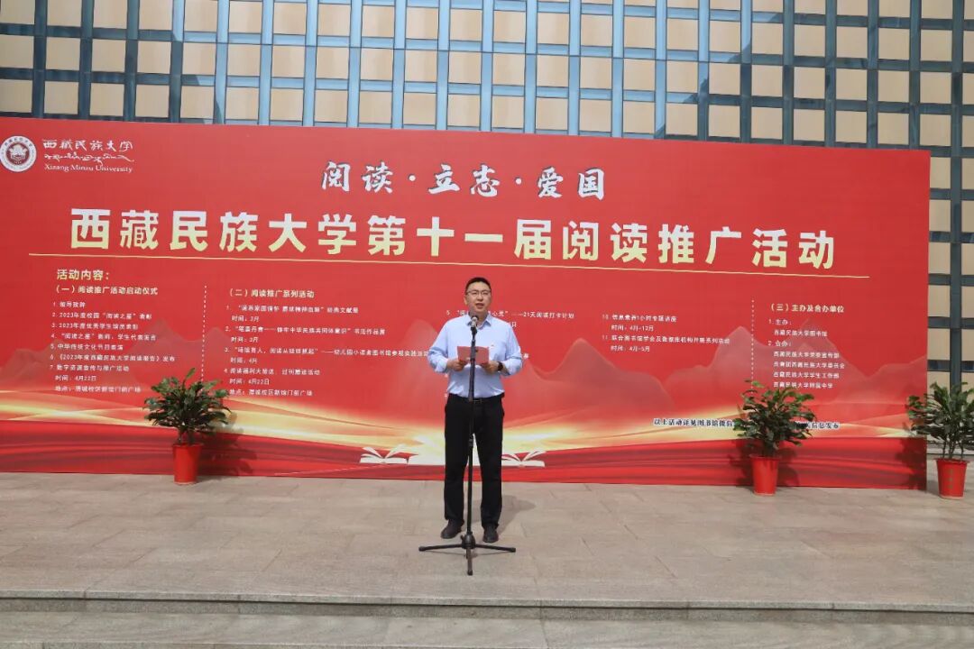 为深入贯彻落实党的二十大精神及习近平总书记致首届全民阅读大会贺信精神,迎接第29个“世界读书日”的到来,4月22日上午,图书馆联合宣传部、团委、学工处、附属中学等单位举办了学校第十一届阅读推广活动启动仪式。本届阅读推广活动以“阅读·立志·爱国”为主题。学校党委常委、副校长次旦玉珍出席活动并致辞,图书馆党总支书记刘伟光、馆长孔繁秀、副馆长冯云、学校相关职能部门、学院负责人、师生代表、社区工作人员和离退休老干部以及图书馆全体职工参加了启动仪式,本次活动由冯云主持。