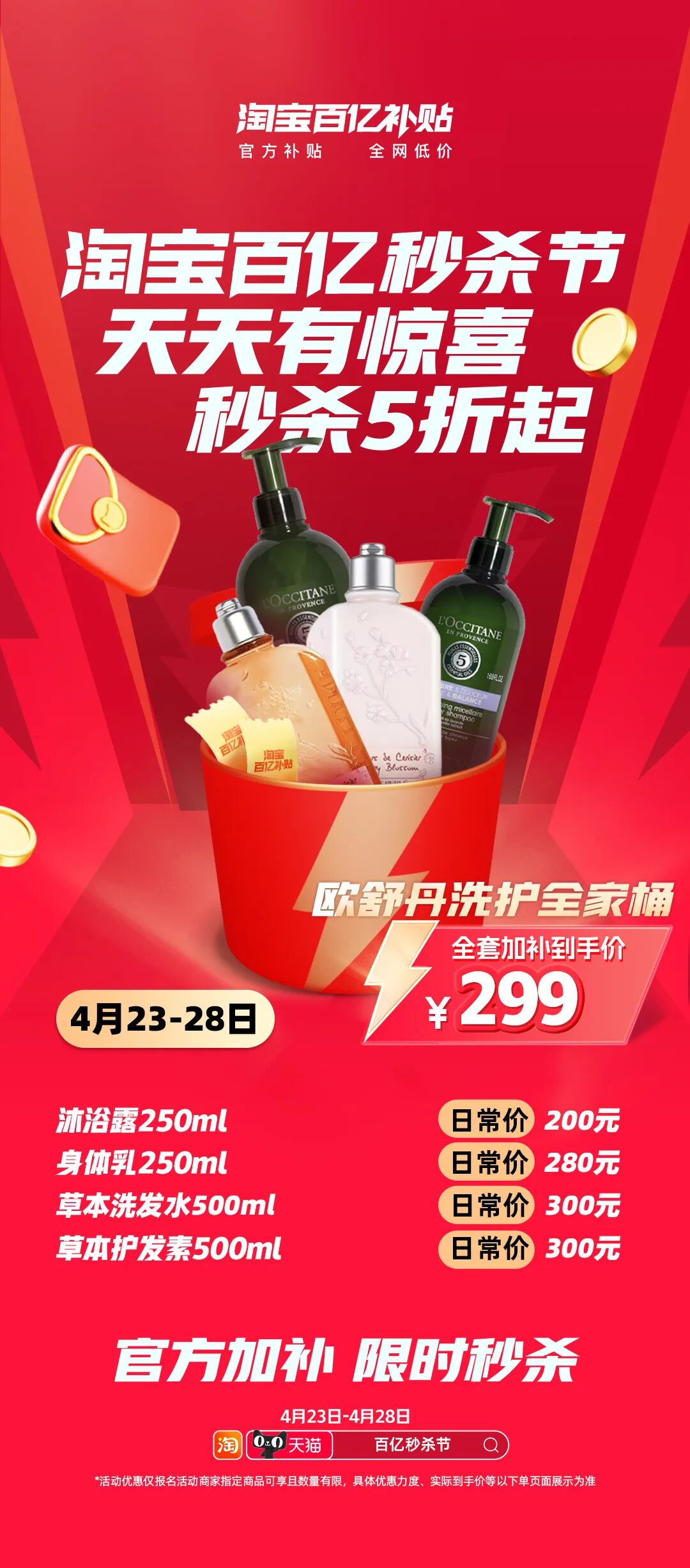 299元冲欧舒丹洗护全家桶!