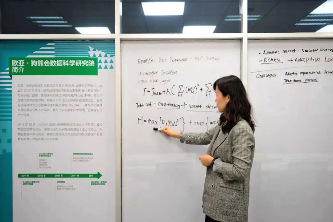 欧亚 · 狗熊会数据科学研究院参会师生合影,张俊丽(前排中)数据科学与大数据专业的人才培养主要依托于欧亚·狗熊会数据科学研究院开展,通过一系列有趣的生活案例分析引入数据分析相关内容:西安火锅市场分析、一卡通消费与学习成绩的影响、三碗不过岗?(白酒销量影响因素分析)等,同时研究院还会定期举办数据案例分析大赛,让学生在玩转课堂的同时感受数据带来的社会价值及意义。欧亚·狗熊会数据科学研究院依托狗熊会每年都会定期组织学生和老师们共同参与全国性论坛,欧亚内部也会邀请各高校导师、企业高端人才等进行统计数据分析和挖掘方法前沿应用的探索分享。研究院不仅为院校数据人才的培养搭建了高端的学术交流平台,更是为数据分析行业的校企合作奠定了坚实的基础。“通过组织参加全国性论坛,听取参会嘉宾的演讲报告,教师们眼界更加开阔。尤其是一些产业嘉宾会带来最新的行业动态,不仅对教师的个人成长提高有很大帮助,更重要的是可以将这些鲜活的案例展现在课堂上,与学生探讨交流的同时,也将极大反哺教学。”张俊丽如是说。![]()