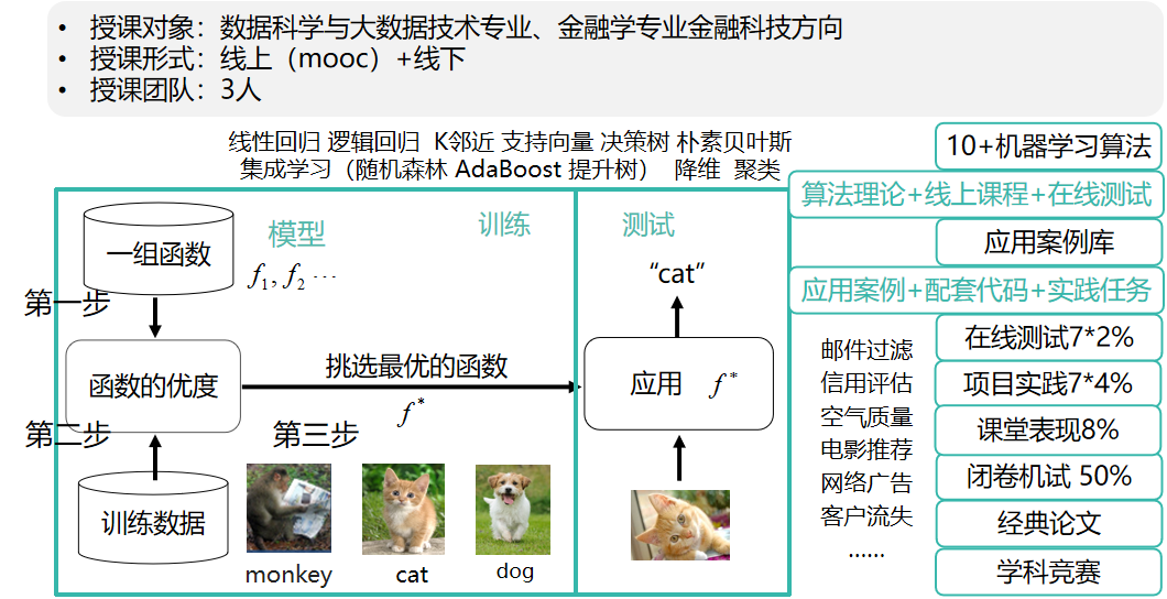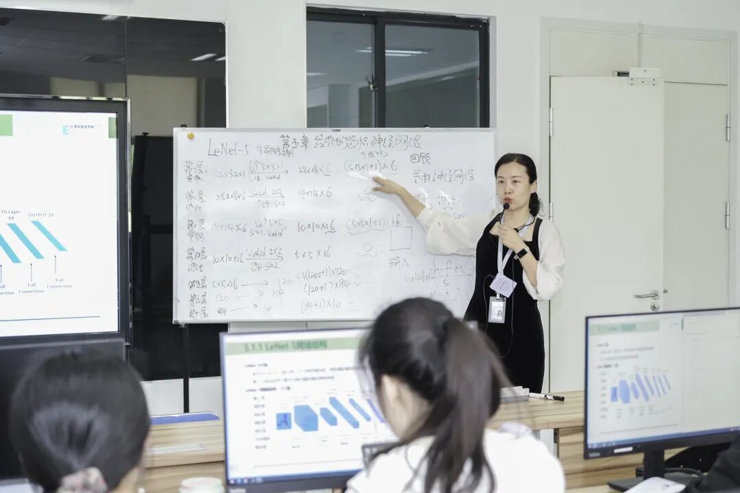 机器学习作为当代人工智能领域的关键分支,机器学习算法和模型处理大规模数据集的能力也不容小觑。《机器学习基础》课程作为数据科学与大数据技术专业中最为关键的衔接课程,其重要作用更是不言而喻。张俊丽作为这门基础课程的主要负责人,不仅需要不断更新课程内容以保持时效性与相关性,更是需要将不同领域的知识和技能加以整合,为学生构建系统化、有层次的跨学科机器学习课程体系。“机器学习需要涉及到许多枯燥的算法,因此课程设计我始终遵循渐进式教学原则,从浅入深、由易到难地引导学生逐步掌握机器学习的基础知识和技术,将复杂的概念和技术拆分成多个小模块,逐步为学生们引入并对知识进行巩固和扩展。”在张俊丽对课程的分层拆解之下,学生们对艰涩难懂的理论基础知识也掌握得更加扎实。活泼轻松是张俊丽课堂的代名词,她始终推崇鼓励式的教学方法,以“大人”之间平等的沟通方式与学生深度对话。这个学期,欧亚“畅课系统”的讨论板成为她和学生互动的得力教学伙伴,许多在课堂上不善言谈的同学也纷纷加入其中,在课前课后记录下自己的疑难问题,在线上发帖,总有专业其他班级的同学紧随其后跟帖帮助解决。记录问题-集中问题-放入共享文档-专业内共同解决,已变成数据科学与大数据技术专业的良好学习习惯。大家对这种新鲜的教学方式感到十分新奇,课堂氛围保持快乐的同时,学生们也从中掌握了许多解决不同计算机bug的方法。张俊丽始终坚信互相积累的力量,她认为,见过的问题愈多,积累的方法也会与日俱增。她会定期运用外部资源联动课堂,共同解决学生的疑难困惑,真正实现了教学相长,共同进步。在创新教学形式的同时,张俊丽也不忘定期测评学生们的专业知识与技能。为了更好地适应不同学生的学习需求,张俊丽构建了线上、线下混合式教学模式。她会采取线上理论测试与线下项目实践结合的方式对学生们考查,一个学期内可达20余次。每个学期末,学生们的成绩也由多元模块组成:课堂表现、闭卷机试、经典论文、学科竞赛……张俊丽通过生动有趣的教学案例和实战项目,很好激发了学生们的学习兴趣与积极性,他们的自主学习能力和创新思维也得到了充分地培养和锻炼。“令我印象最深刻的便是每年和学生们一起为建模竞赛做准备,一起讨论并求解模型,修改、报做、提交,竞赛前的三天三夜我们朝夕相处,这种共同为了一个目标而努力奋斗的感觉很是美好。”全国大学生数学建模竞赛、MathorCup高校数学建模挑战赛、大数据挑战赛、信息技术认证挑战赛……这些都是张俊丽带领每一届优秀的学生们会参与的各项全国和省级的比赛,而他们在每一年的竞赛中,都能取得优异的名次,学生获奖率更是达到85%。![]()