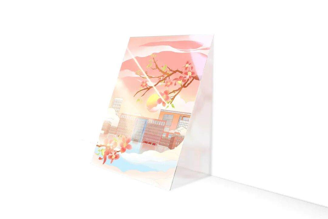 这幅画作通过巧妙的色彩搭配和细腻的描绘,将学院的学术氛围与青春活力完美融合,让人在欣赏的同时,也能感受到学院深厚的文化底蕴和独特魅力。