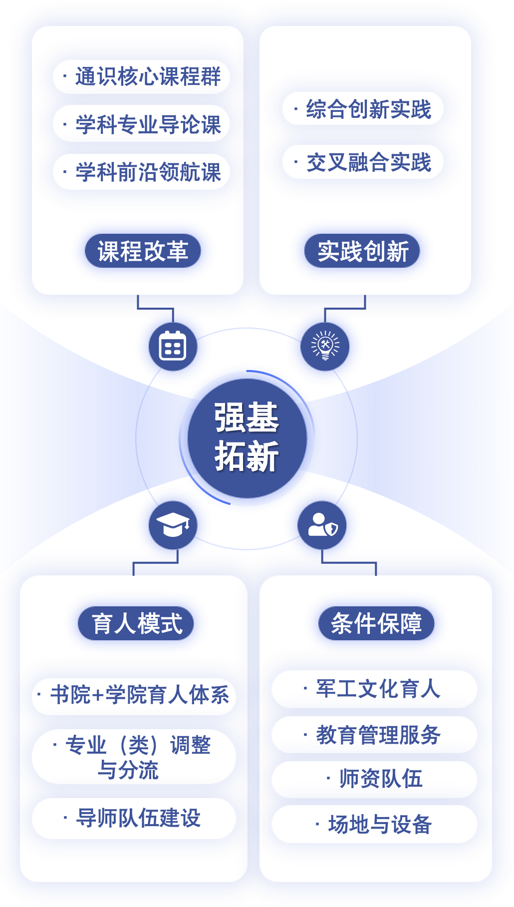 坚持把联动融通作为根本路径,跨校区构建“书院+学院”育人新模式。融通双校区优质教育资源,构建书院和学院融通的课程体系,打造“基础+进阶”课程体系,推进实施本硕博贯通培养。“书院+学院”协同发展;实现“延伸为主、属地为辅、下沉一线、扁平高效”的管理模式;深度融通教育教学与学生管理,全力打造“一张网”,形成强大育人合力,全面落实创新型卓越人才培养。