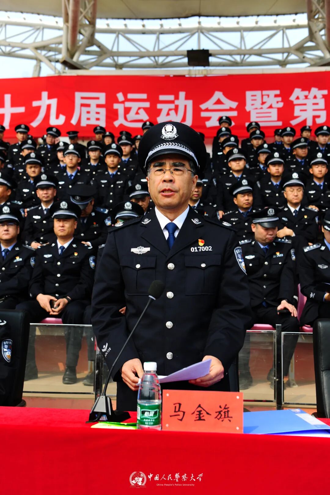 马金旗在致辞中指出,体育是大学育人的重要载体,对于培养运动兴趣,掌握运动技能,养成运动习惯,增强素质体质,培塑勇敢、自信、拼搏、协作的体育精神具有重要作用。体育是大学文化的重要内容,芝兰之室有书香,练兵场上有血性,丰富多彩的体育活动在潜移默化中影响着广大师生的行为规范,丰富着校园文化底蕴,熔铸着大学精神内核与光芒。体育是办学实力的重要体现,是衡量学校人才培养质量的重要指标,高品质的体育运动对落实“立德树人”根本任务,更好服务新质公安战斗力生成和公安工作现代化,意义重大。