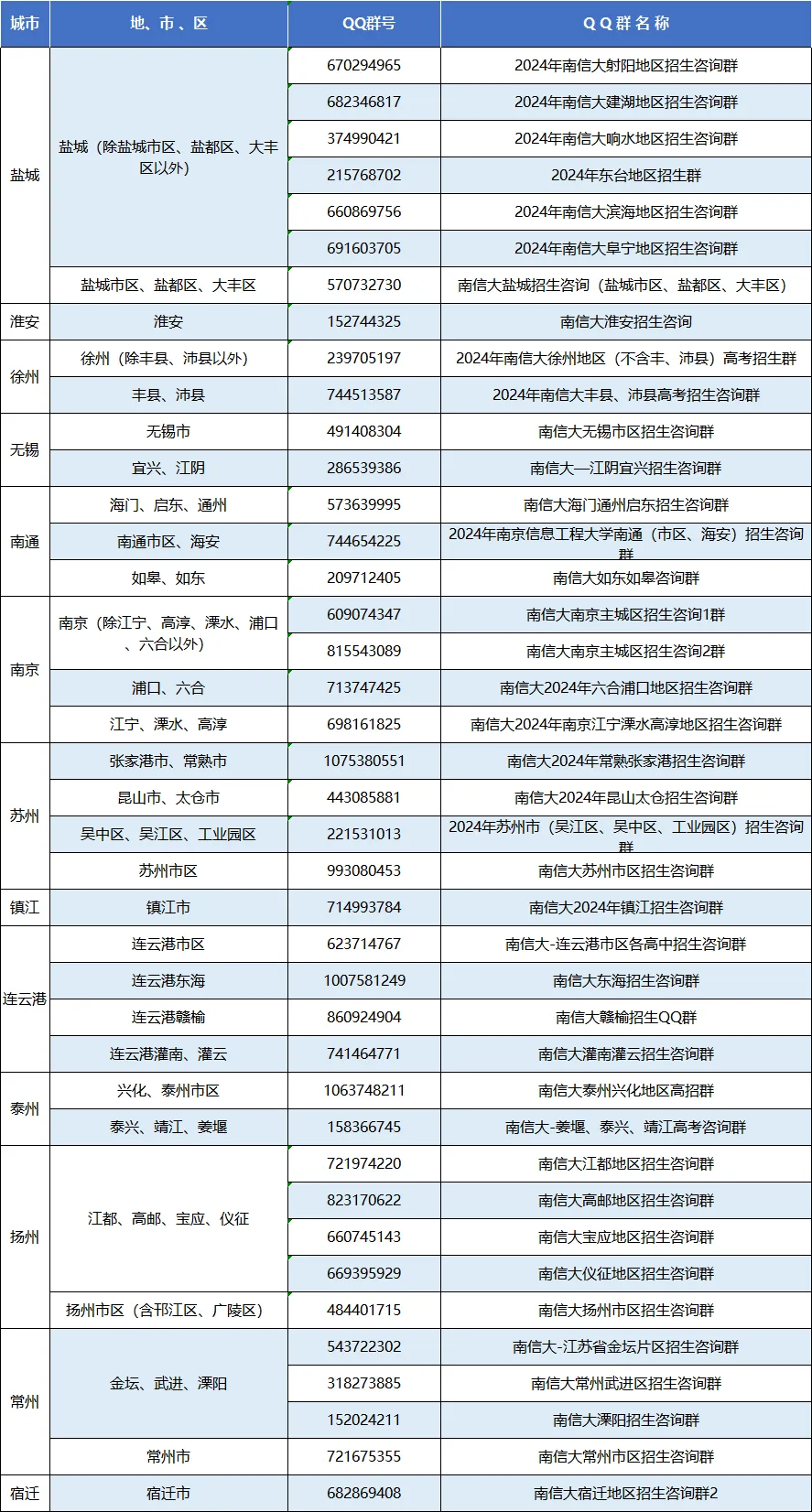 此外,也可以加入我校在江苏省各地区的招生咨询QQ群。
