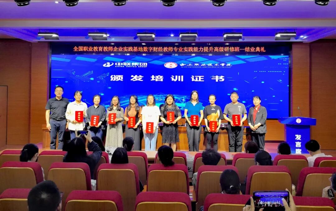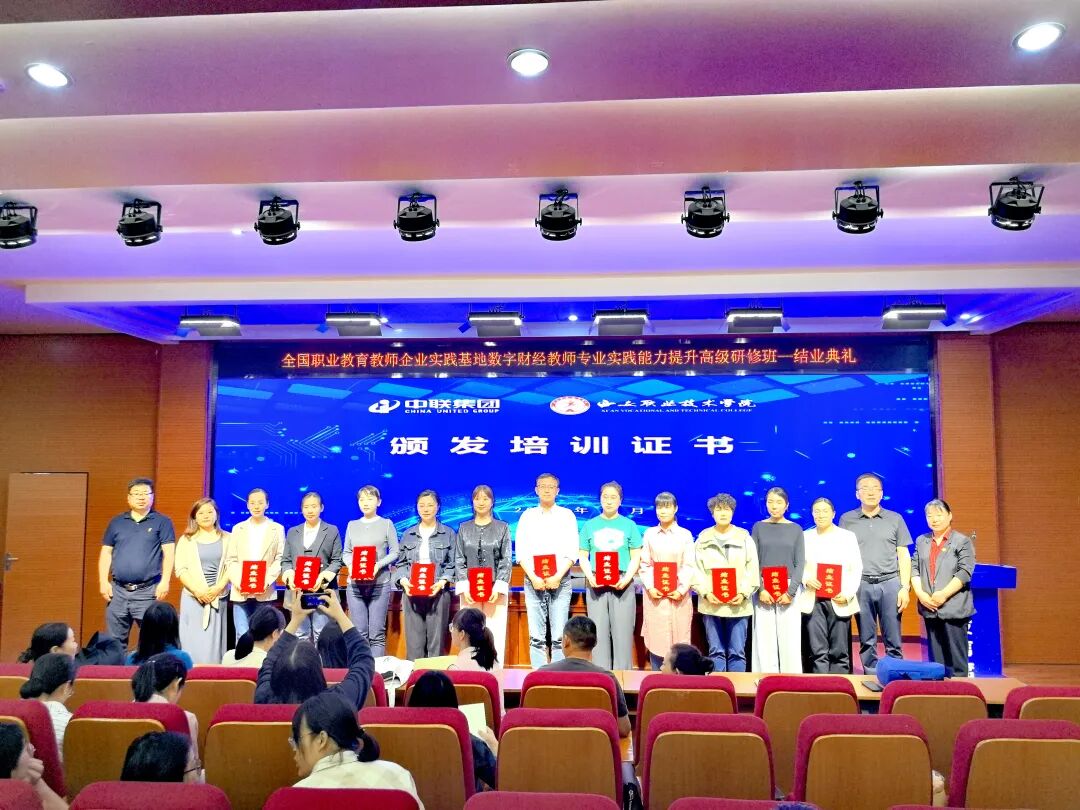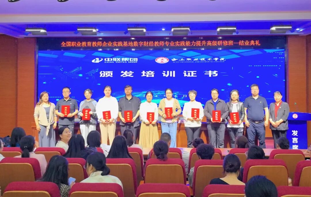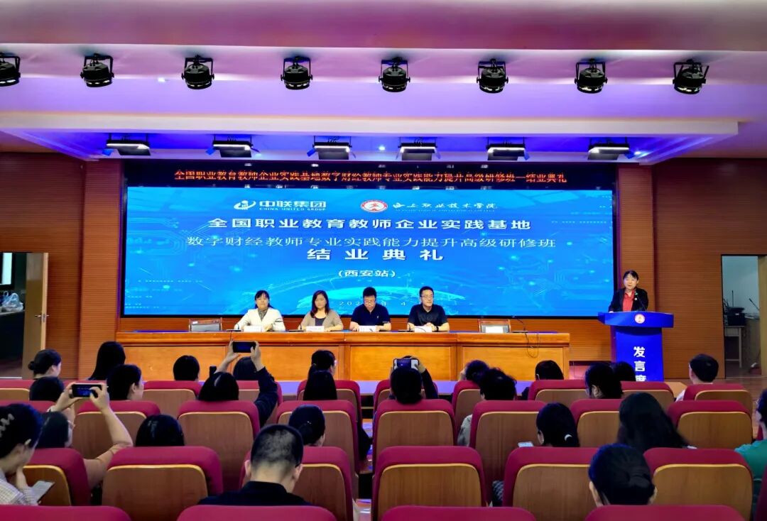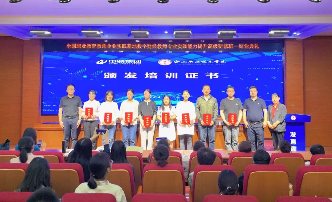 4月21日下午,为期五天的全国职业教育教师企业实践基地培训项目——“数字财经教师专业实践能力提升”高级研修班在我院正式结班。承办单位代表现代商学院副院长朱向锋、党总支书记杨琴、教学副院长何华以及主办企业方代表中联集团教育科技有限公司陕西省总经理赵子军、培训中心总监罗晓丹出席结业典礼。