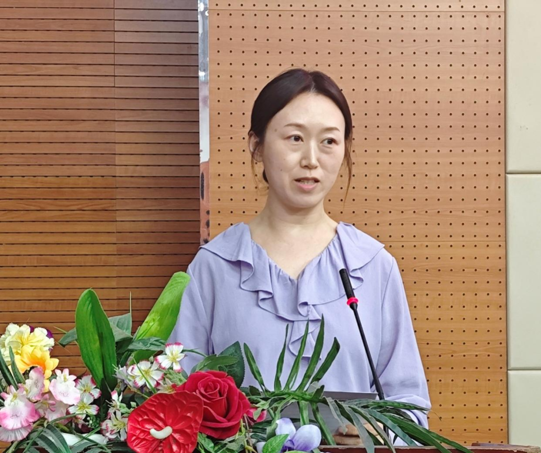 科研处处长张颖对“青蓝工程”第二期的开展情况进行了总结汇报。第二期“青蓝工程”“导师”代表姜淑琴教授、第二期“青蓝工程”“徒弟”代表尚光绯老师在大会上做总结发言。