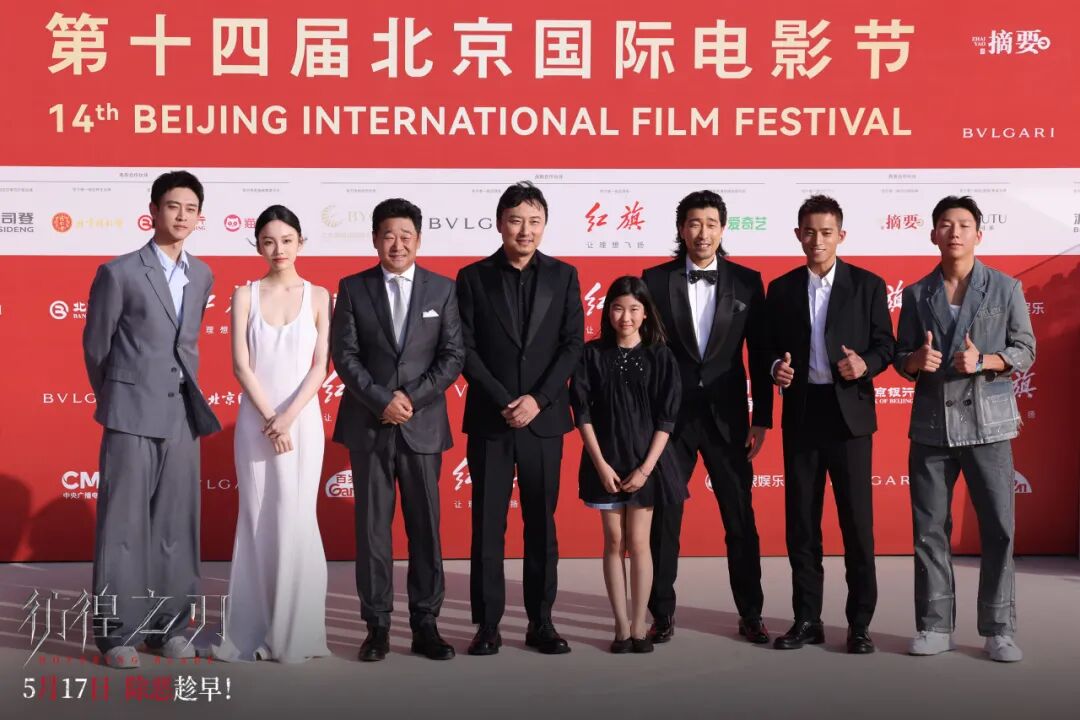 2024年4月18日,导演陈卓携电影《彷徨之刃》主演王千源、王景春、阿如那、周政杰、王天辰、吴双等亮相第十四届北京国际电影节开幕式红毯。