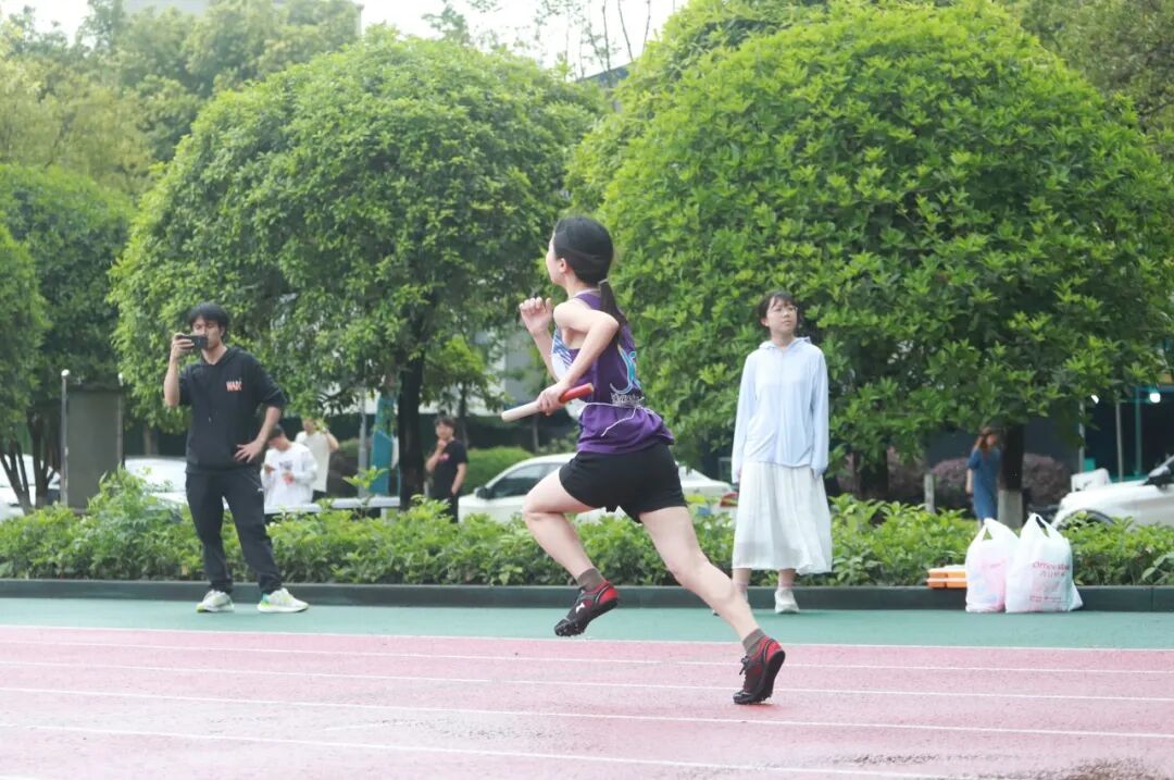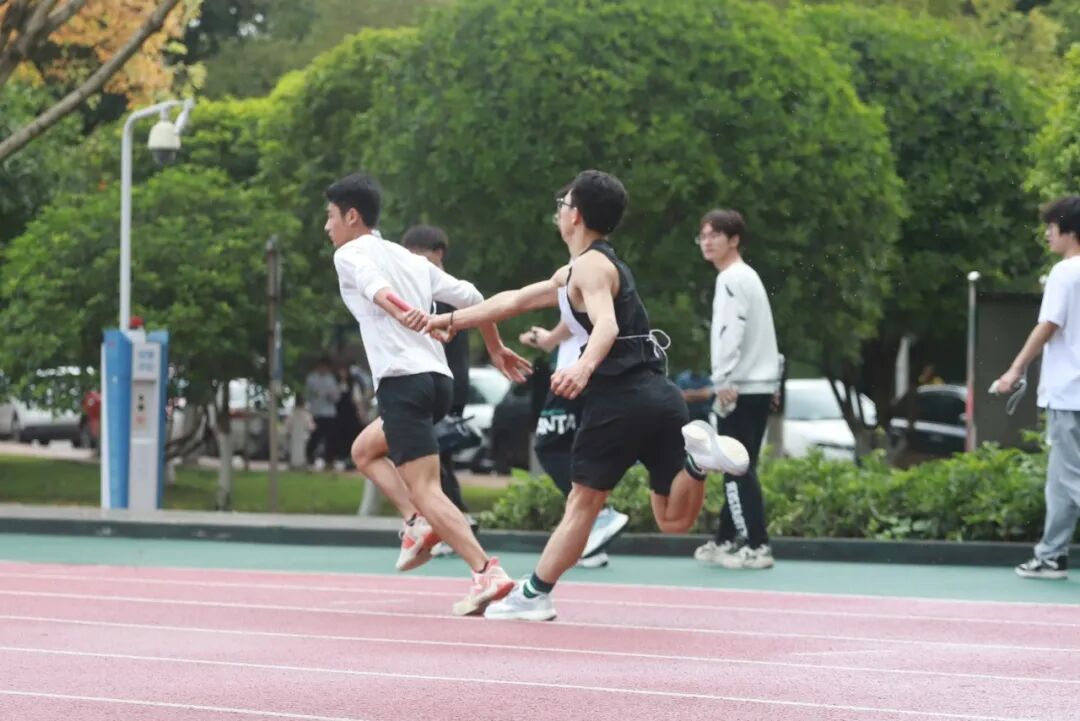 我们还是有底气获得冠军的,因为我们组的两位女生是百米决赛的前二名。磨合阶段交接棒的问题是最困难的,甚至比赛前一两天我们都在进行交接棒训练。最终能够取得这样一个成绩是我们四个人共同努力的成果,感谢学院还有同学的加油助威,让我们拼下这个记录!
