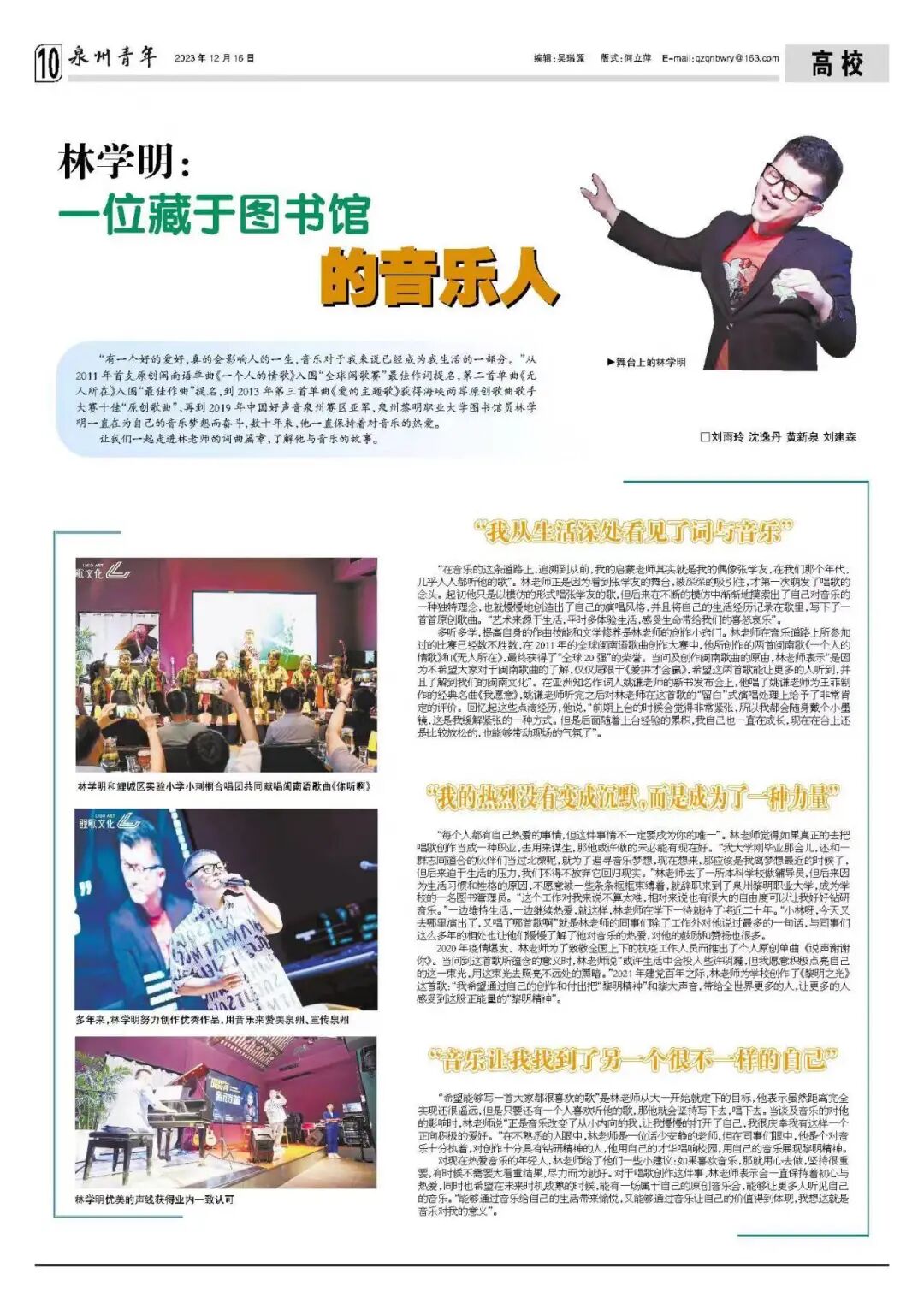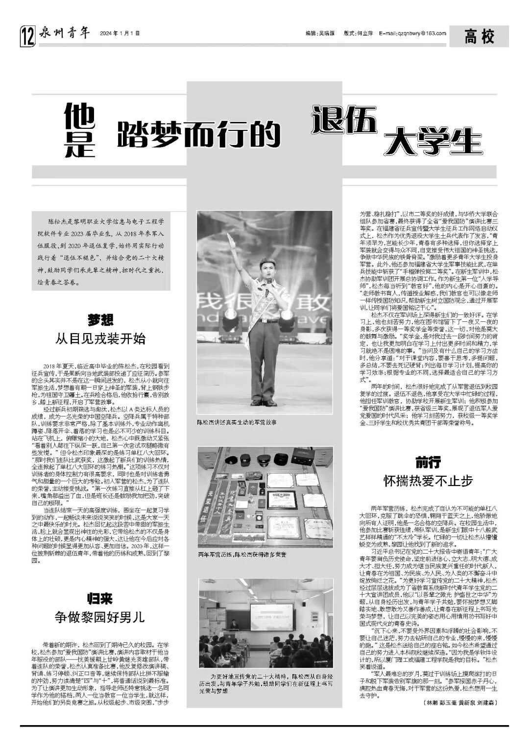 【泉州青年报】投稿文字作者:校报编辑部 林湘 彭玉毫 黄新泉 刘建森