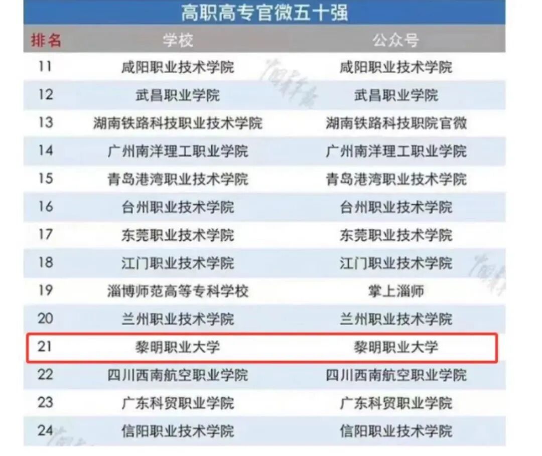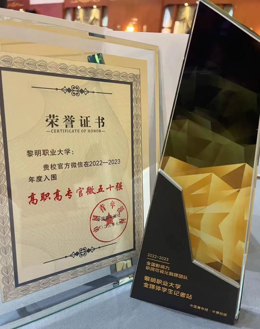 ▲2022年10月记者站运营的黎明职业大学官方微信在2021-2022年度入围中国青年报“高职高专官微50强”