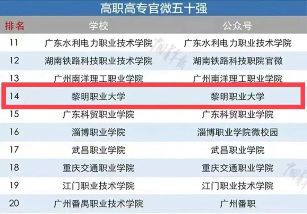 ▲2023年8月记者站运营的黎明职业大学官方微信在2022-2023年度入围中国青年报“高职高专官微20强”