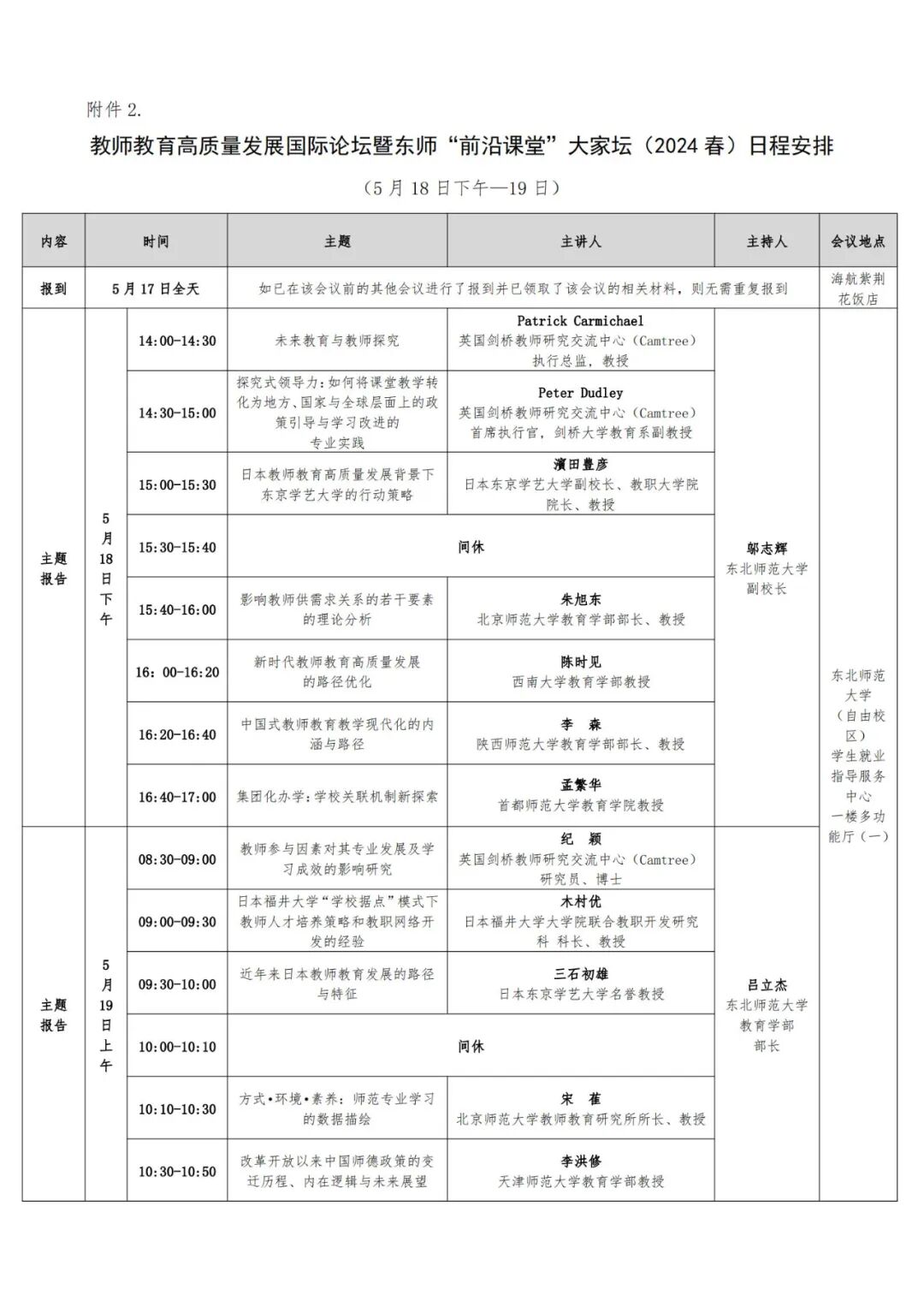 02.教师教育高质量发展国际论坛暨东师“前沿课堂”大家坛(2024春)日程安排(5月18日下午—19日).pdf