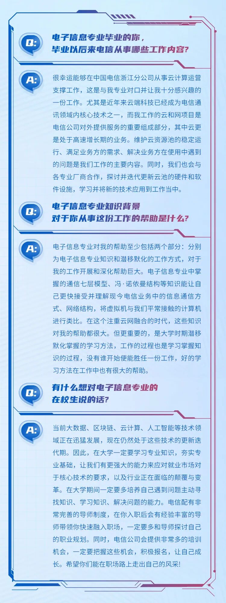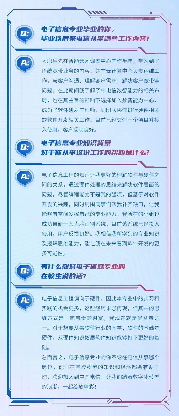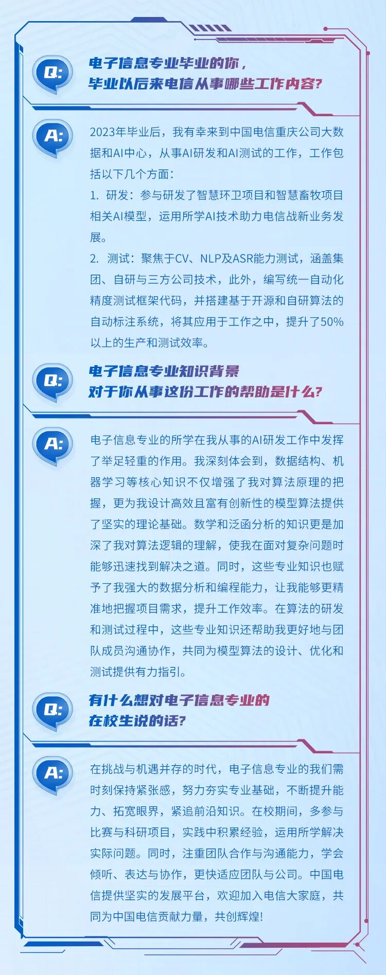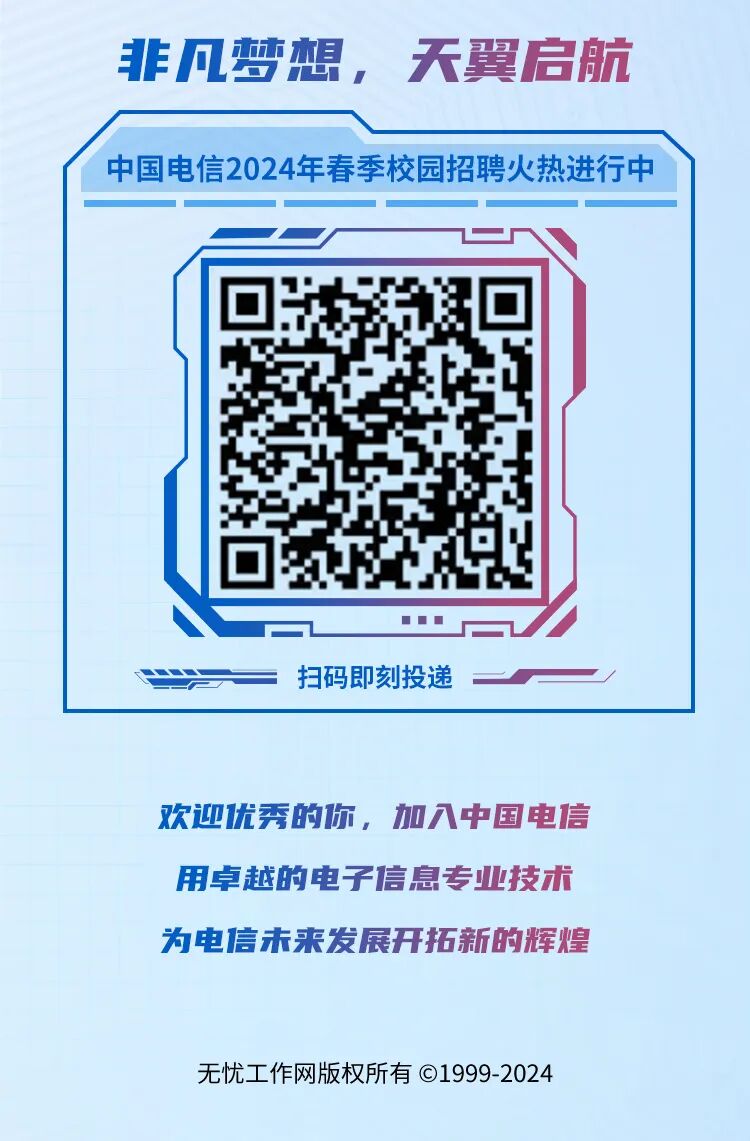 文章内容来源于公众号:中国电信校园招聘,点此可查看原文,内容版权归相关企业所有,本网站仅供交流学习。若涉及版权问题或存在侵权情况,请及时与我们联系,我们将第一时间进行删除处理。