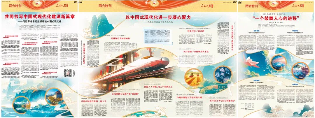 人民日报海外版在今年全国两会报道中创造性地使用生成式AI技术制作版面。在“尝鲜”AI过程中,持续提升人机交流能力和审核把关能力,提升AI准确性。使用生成式AI技术制作的版面,主题突出、新意十足、辨识度高,呈现“年轻态”。
