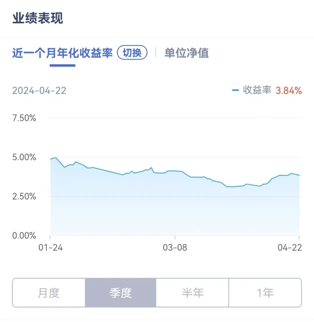可以看到,该产品近一个月年化收益率,在季度内虽然有些轻微波动,但总体区间在3%以上,且最近收益率也在保持回升趋势。并且与长期理财产品相比,14天持有期的产品在流动性上具有明显优势。投资者可以在较短的时间内灵活安排资金,满足短期资金需求。