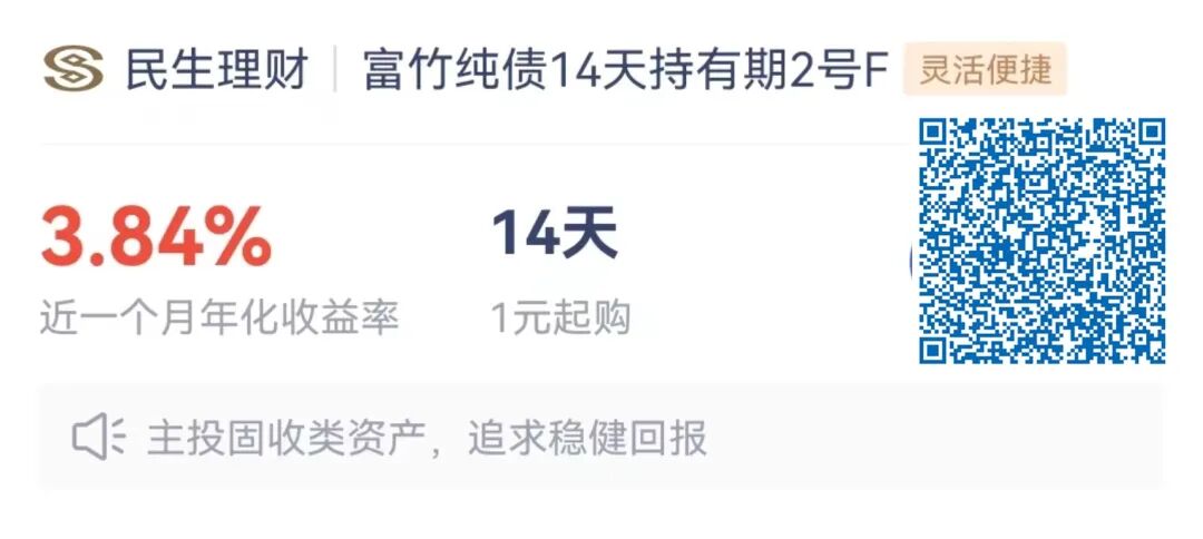 总的来说,富竹纯债14天持有期2号F理财产品结合了短期理财的优势,如较高的流动性和较低的风险,同时提供了稳定的收益表现,适合那些希望在短期内实现资金增值且偏好稳健投资的投资者。