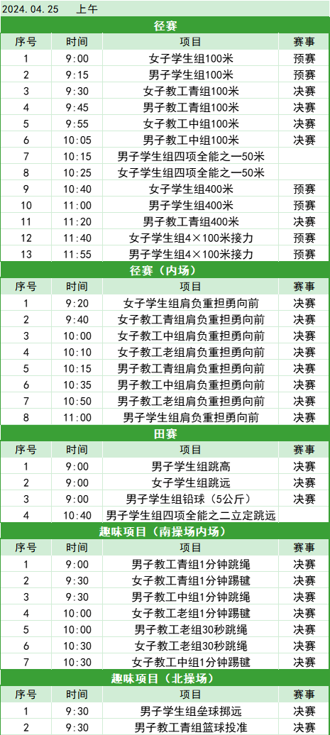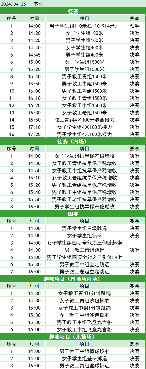 2024田径运动会竞赛日程
