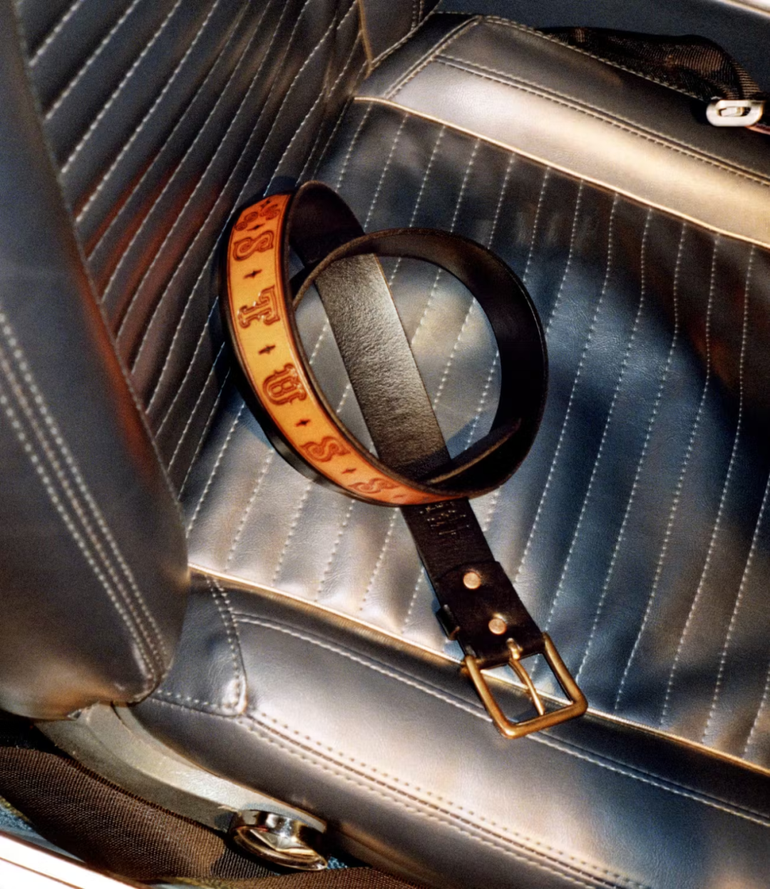 这一次联名除了 Vibe 感十足的牛仔套装,还有一条复古的花纹压印腰带,似乎有着爆款的潜力。