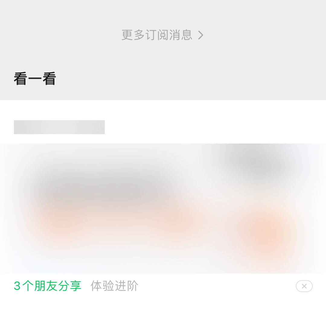 目前公众号的做法是,先推很多订阅消息,之后再把兴趣推荐集中在底部的「看一看」模块里。让读者必须滑完好几屏的订阅消息,才能看到兴趣推荐的陌生账号内容。
