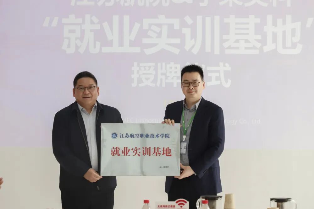 会议最后,还与孚莱美科、天工国际等企业进行了“江苏航院就业实训基地”授牌仪式。