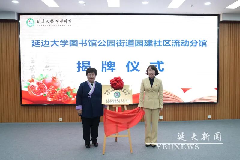 仪式上,吉林省新华书店集团延吉市有限责任公司向我校学生捐赠10万元“惠民购书卡”,校党委学生工作部部长林雪梅代表学校接受捐赠;崔香淑与延吉市公园街道党工委书记金美花共同为“延边大学图书馆公园街道园建社区流动分馆”揭牌;图书馆党总支书记李爱丹代表图书馆向社区捐赠图书;学校出版社、珲春市档案馆分别向我校图书馆捐赠图书和地方志。学生代表楚嘉乐在仪式上发言。吉林省新华书店集团延吉市有限责任公司、延吉市公园街道、珲春市档案馆;学校相关职能部门、部分学院负责人及师生代表参加了仪式。