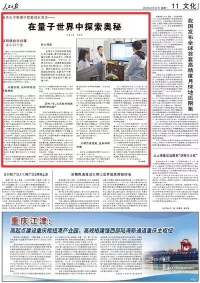 4月22日,《人民日报》刊登题为《在量子世界中探索奥秘》的文章,报道了南京大学物理学院教授杜灵杰持续探索科研前沿,不断实现新的突破与创新的事迹。全文内容如下: