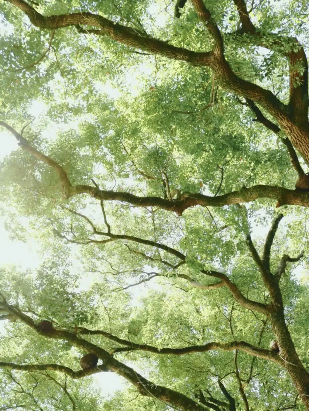 阳光穿过绿叶与枝桠