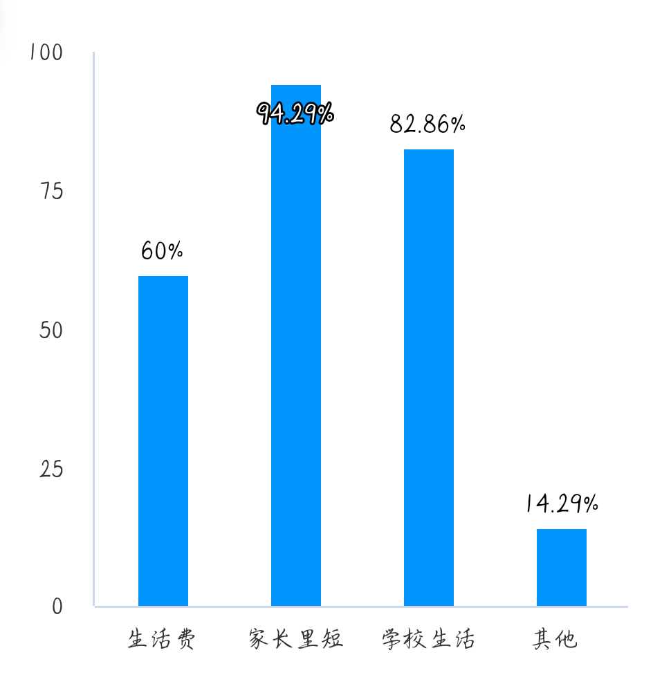 由这些调查结果可见,很多大学生在校也会牵挂家里,与父母进行联系。