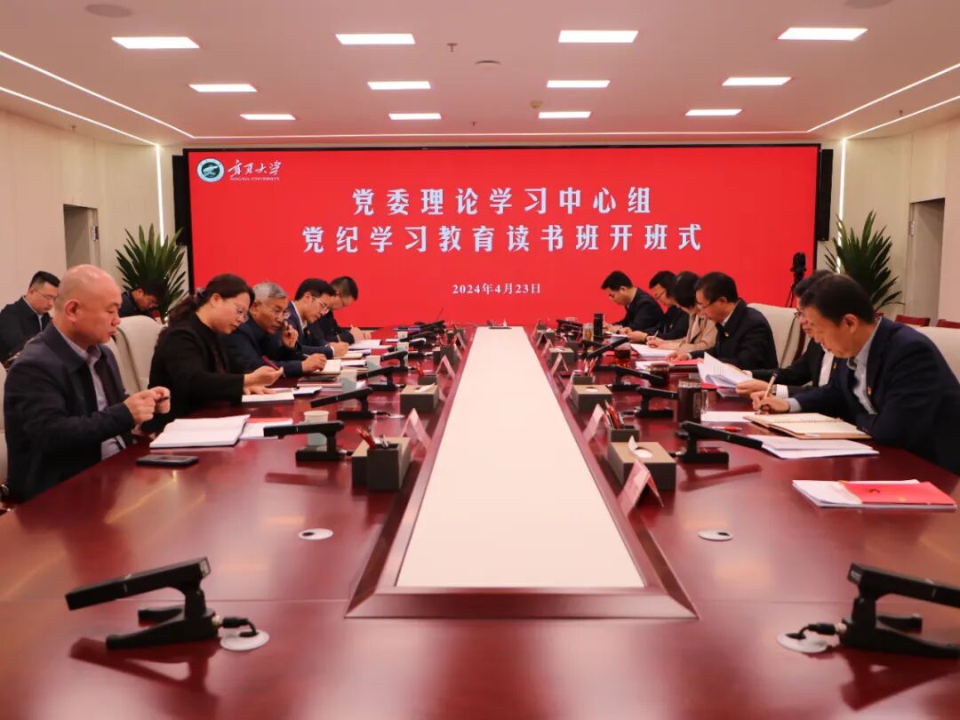 为深入学习贯彻习近平总书记关于党纪学习教育的重要讲话和重要指示精神,认真学习贯彻新修订的《中国共产党纪律处分条例》,引领带动广大党员干部进一步强化纪律意识、加强自我约束、提高免疫能力,4月23日,宁夏大学党委理论学习中心组党纪学习教育读书班正式开班。
