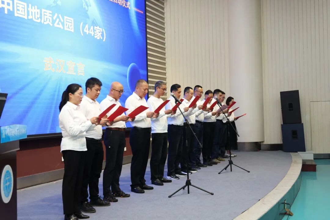 来自国家地质公园的12名代表齐聚会场,共同宣读“保护地质遗产 守护地球家园”的世界地质公园宣言。