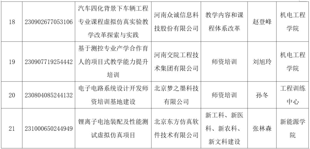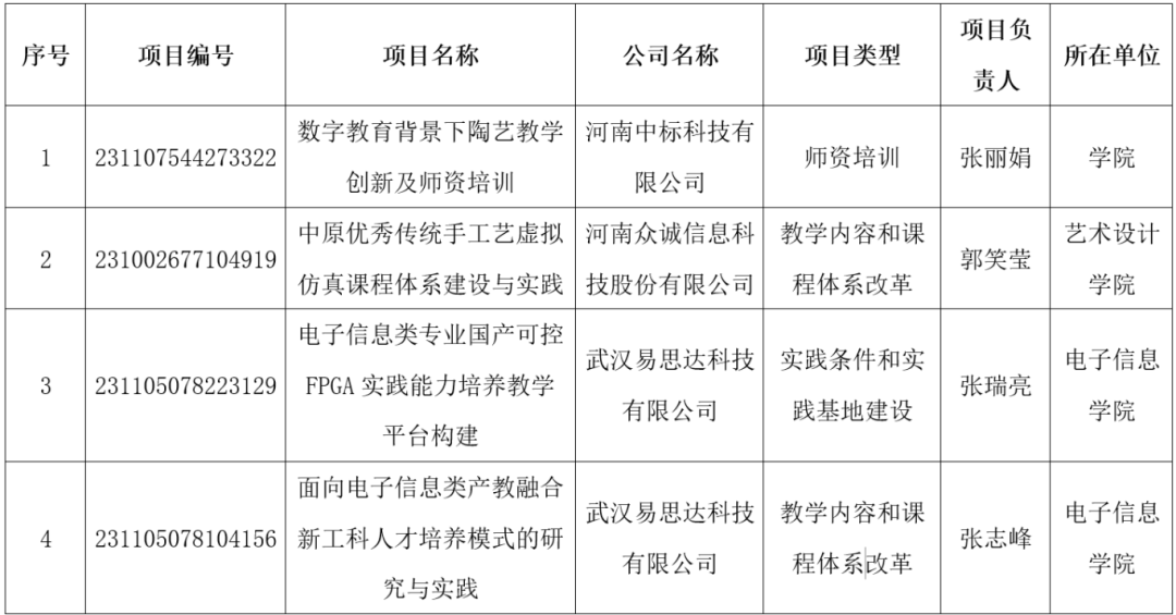 产学合作协同育人项目由教育部高等教育司组织有关企业支持高校共同开展,旨在通过搭建校企对接平台,以产业和技术发展的最新需求推动高校人才培养改革。这些项目的实施将进一步深化校企协同育人,促进产教融合,对加强我校专业内涵建设,改善实践教学条件,提高人才培养质量等方面有重要意义。项目负责人要与相关企业加强联系,按照要求高质量高效推进项目实施,按照《项目管理办法》的要求和合作协议的约定,及时完成项目结题验收工作。